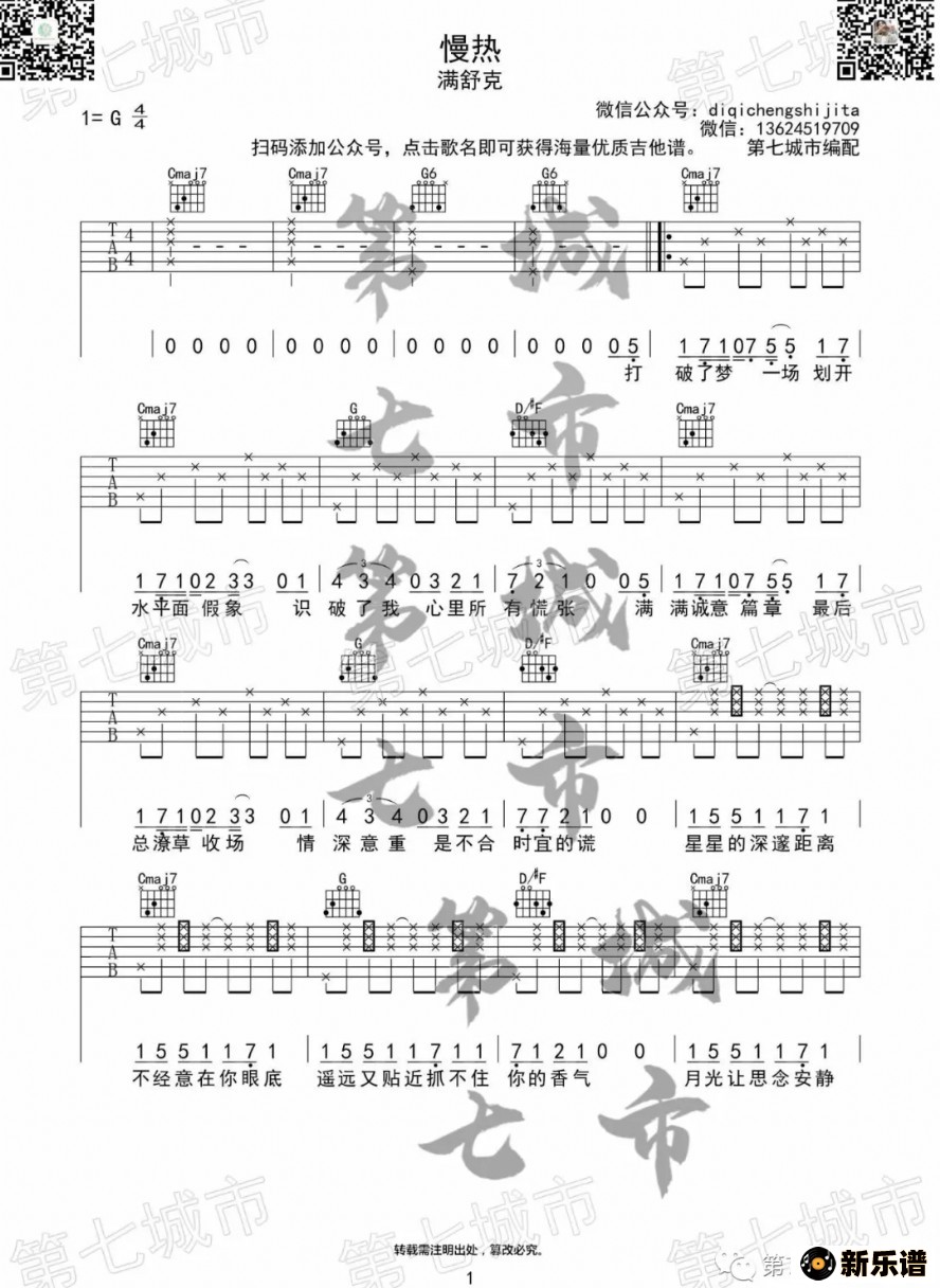 满舒克演唱的慢热歌词,慢热吉他谱.