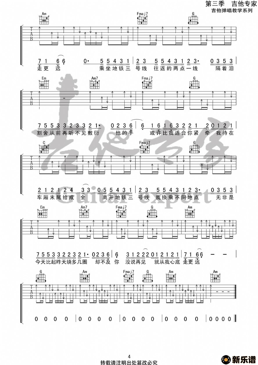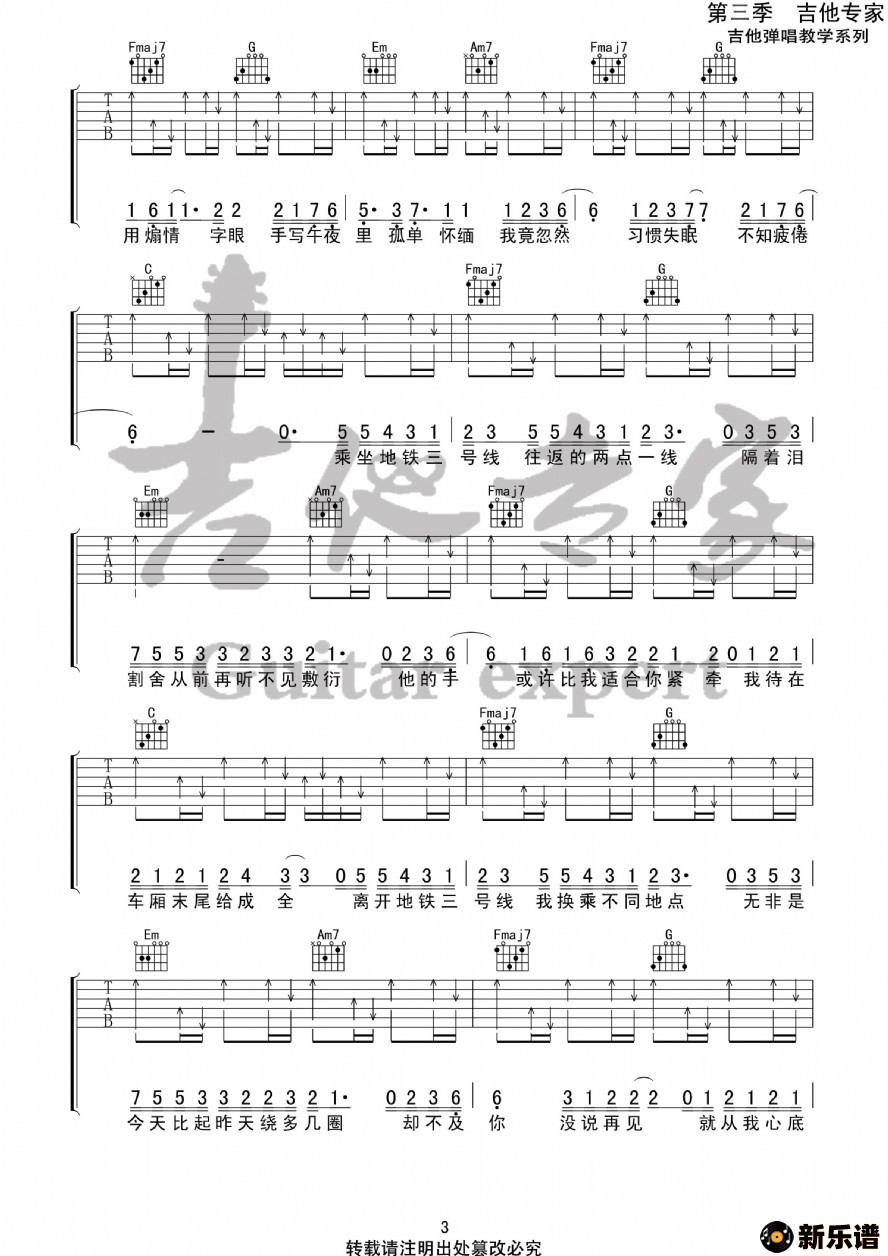 《三号线 原版吉他谱》吉他谱 -吉他专家制谱