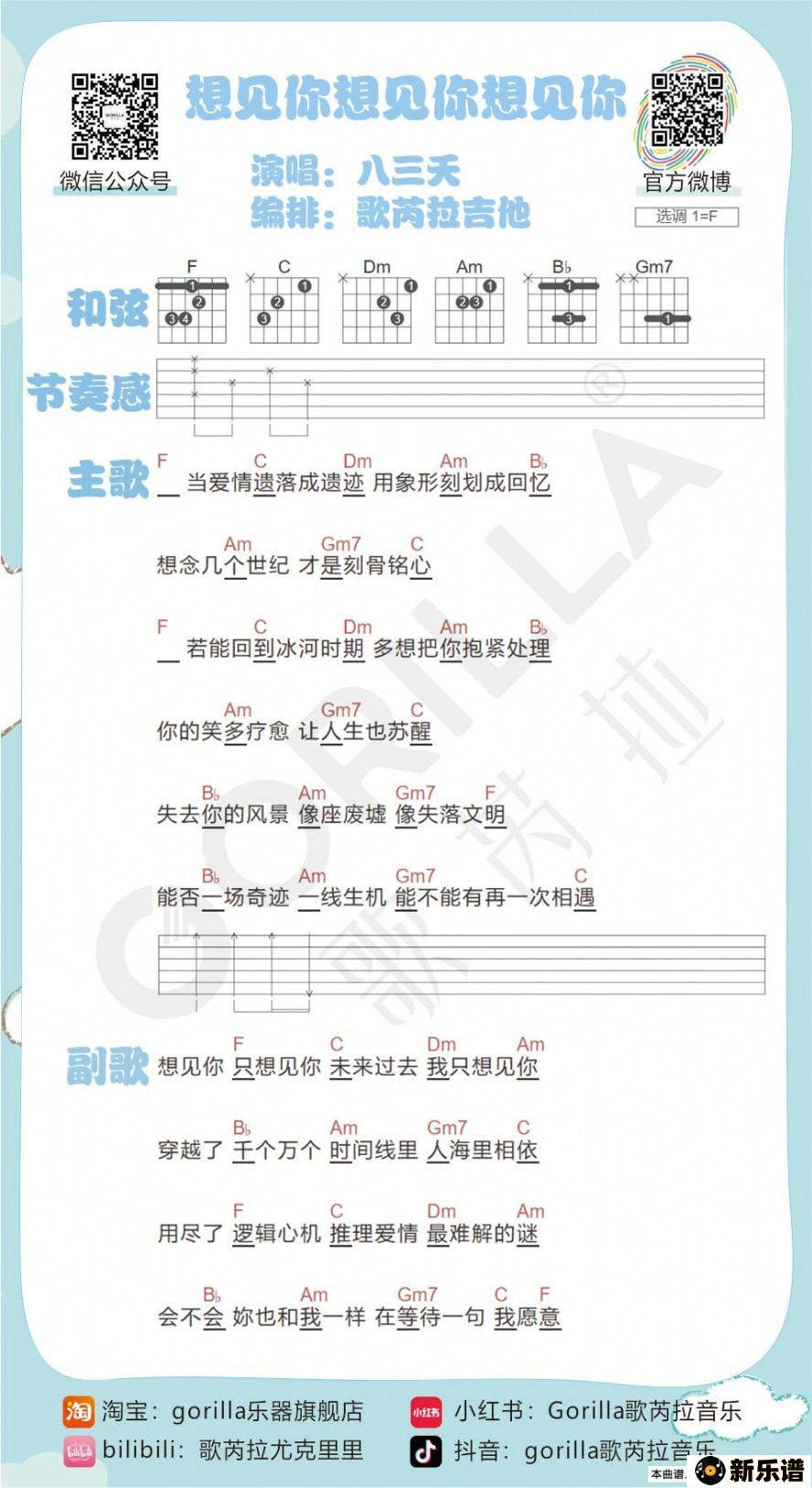 八三夭演唱的《想见你》吉他曲谱教学歌词,《想见你》吉他曲谱教学吉他谱.