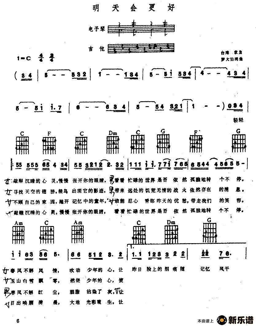 演唱的明天会更好歌词,明天会更好吉他谱.