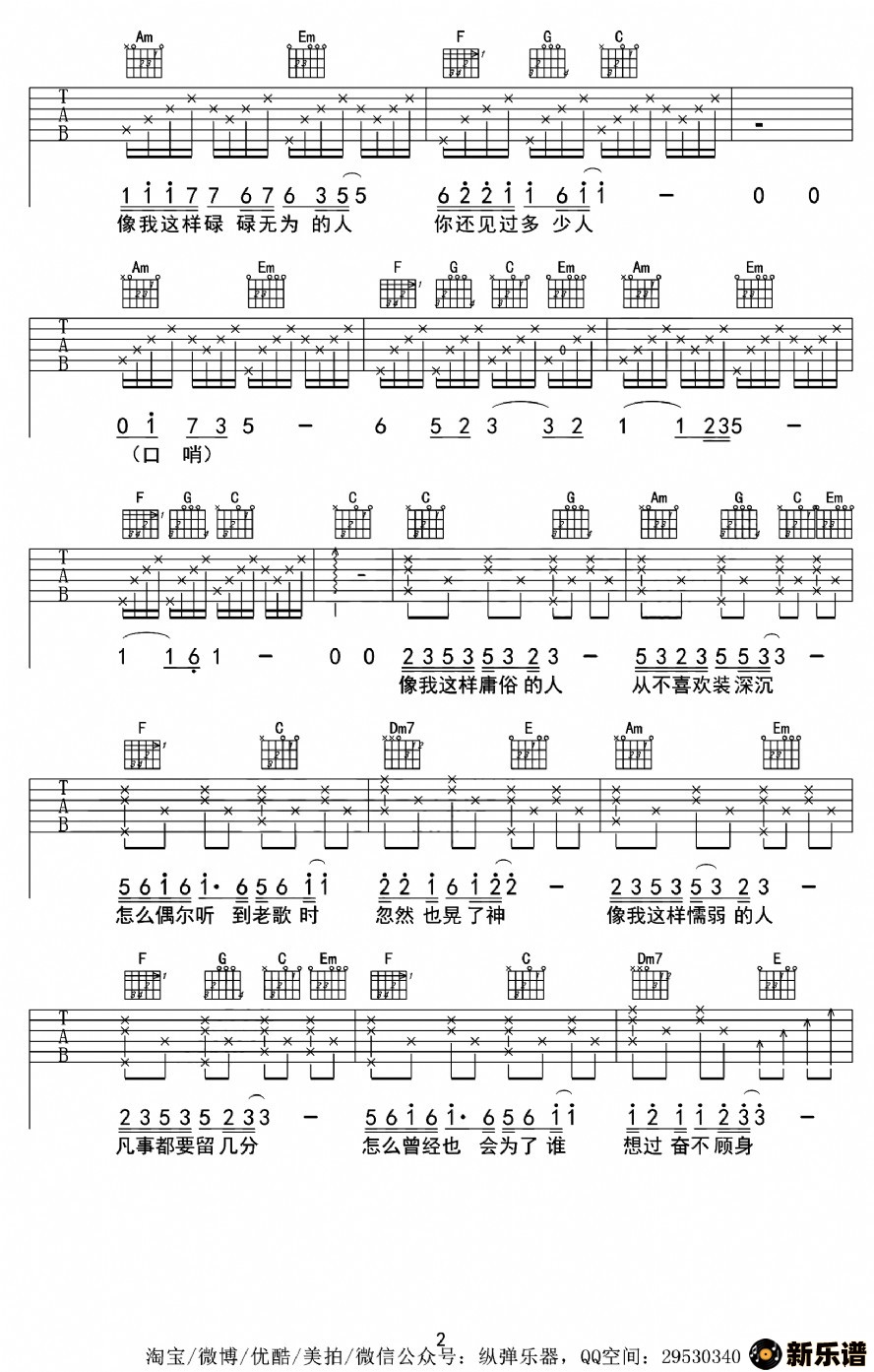 无名的人(电影《雄狮少年》主题曲)吉他谱