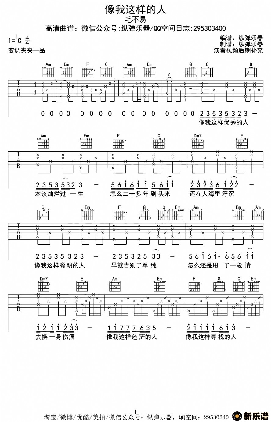 毛不易演唱的像我这样的人歌词,像我这样的人吉他谱.