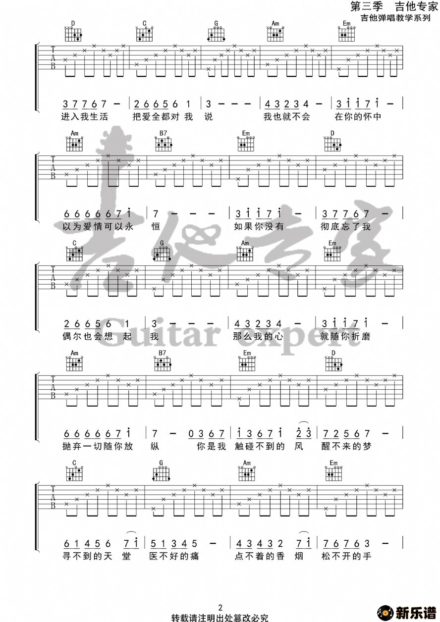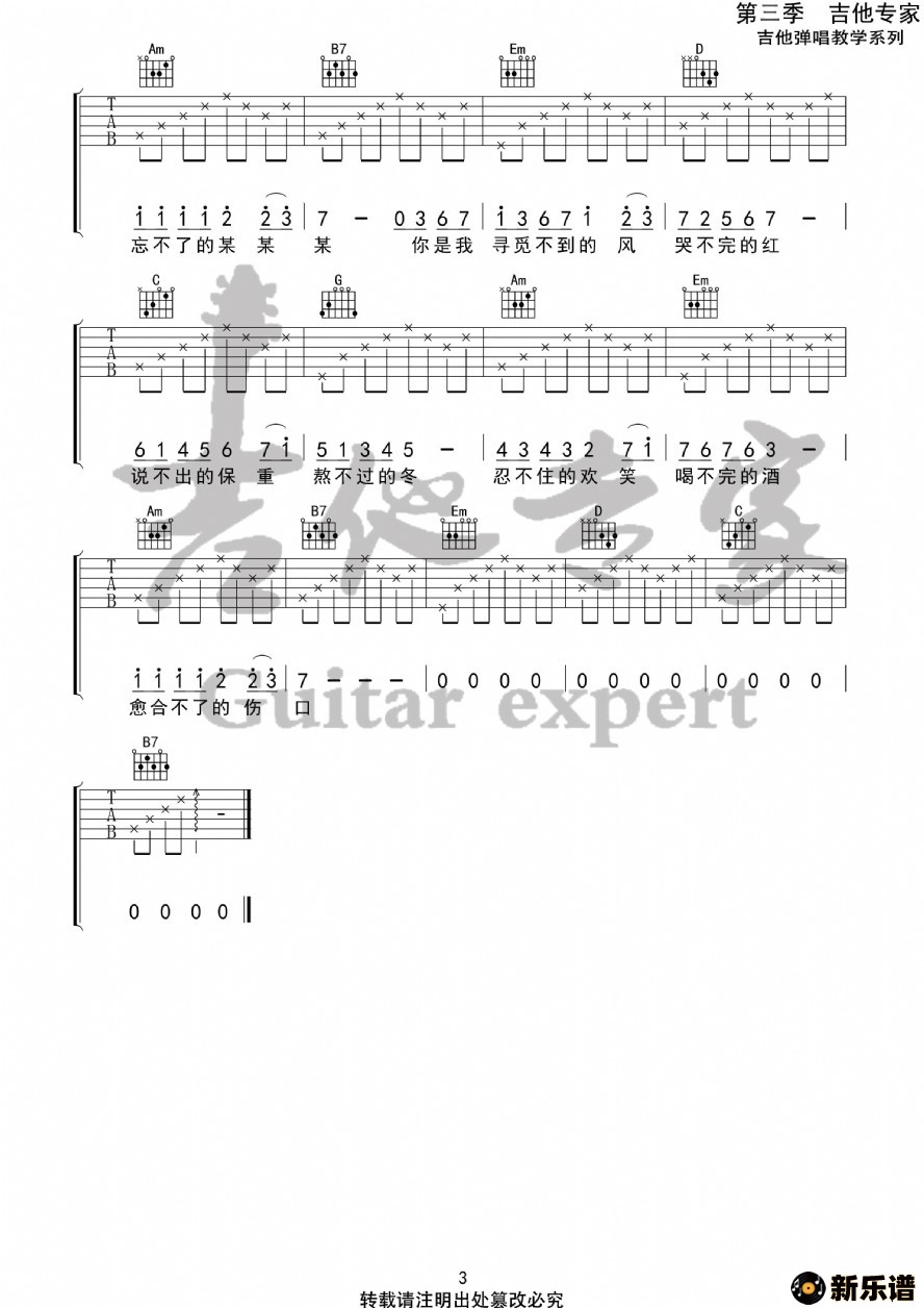 此吉他谱由新乐谱会员