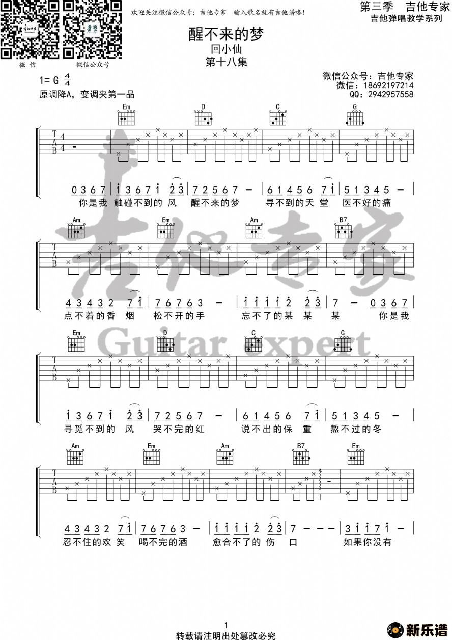 《醒不来的梦 原版吉他谱》吉他谱 -吉他专家制谱