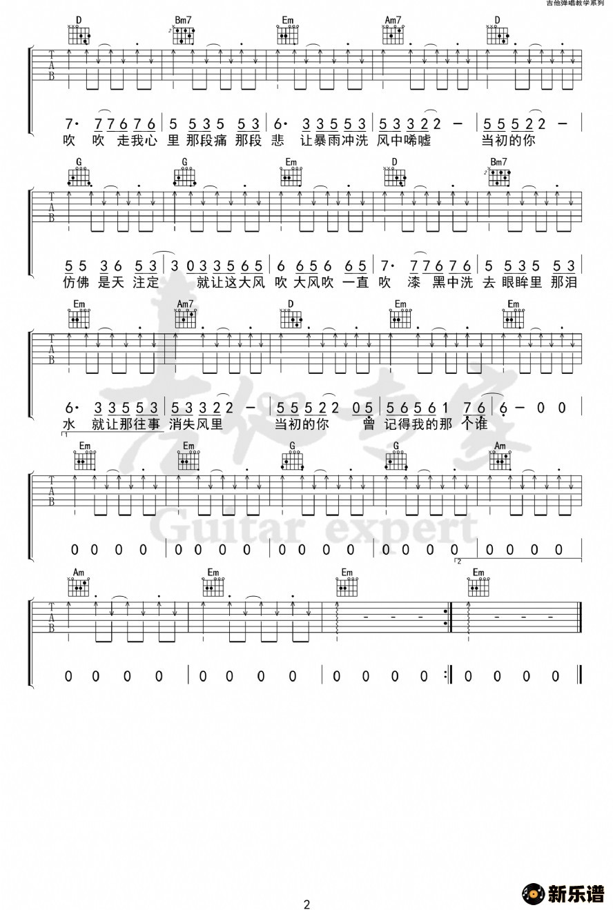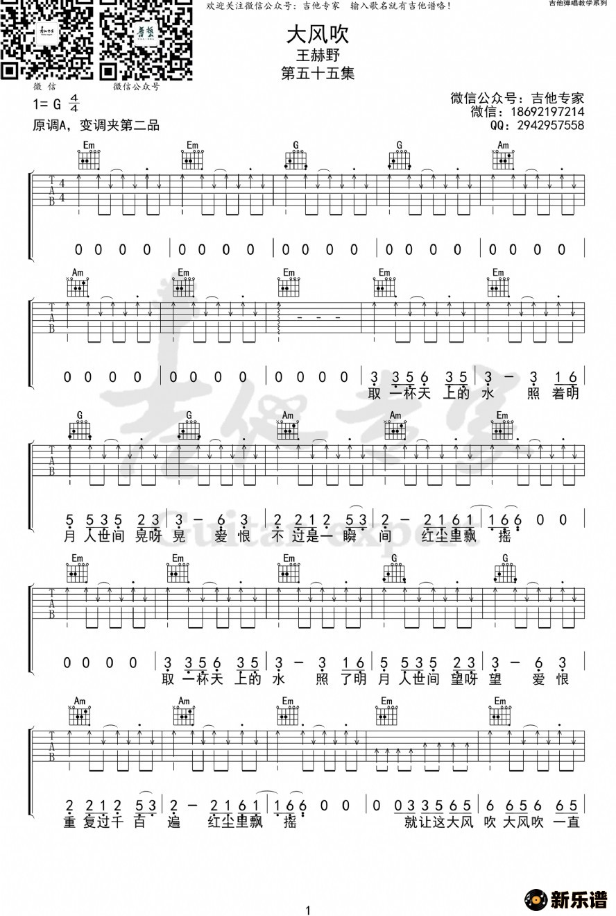 《大风吹(G调简单版)》吉他谱 王赫野-吉他专家制谱