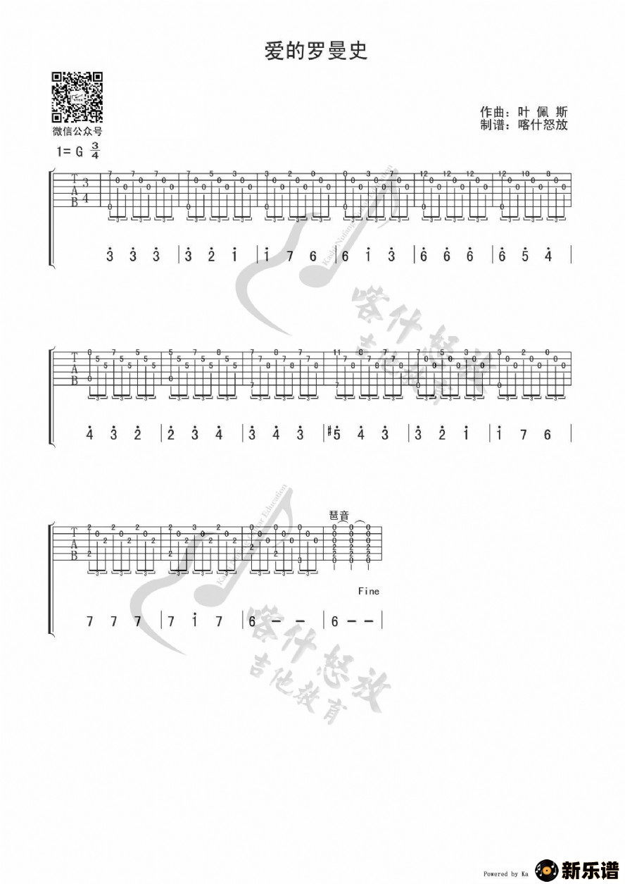《爱的罗曼史》吉他谱