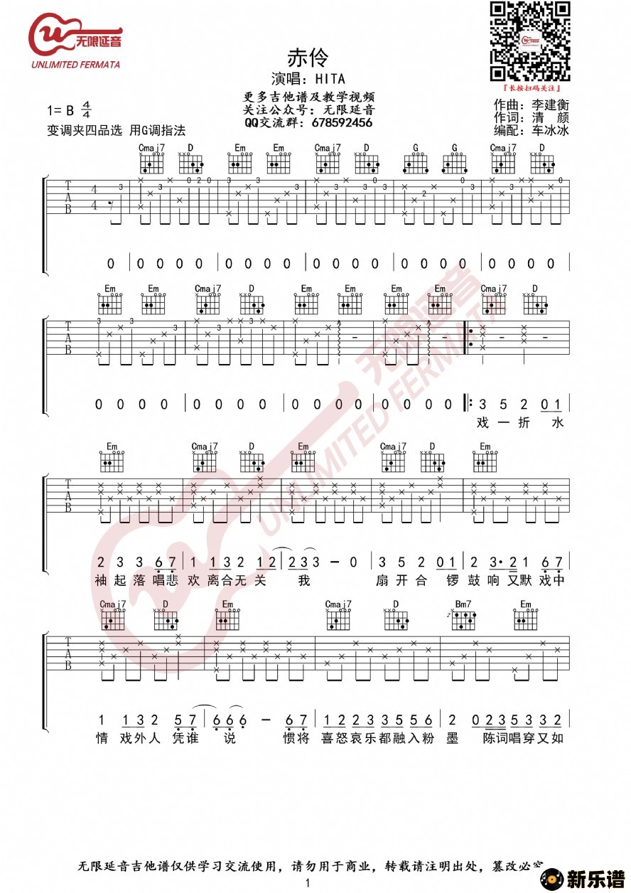 hita演唱的hita 赤伶 吉他谱歌词,hita 赤伶 吉他谱吉他谱.
