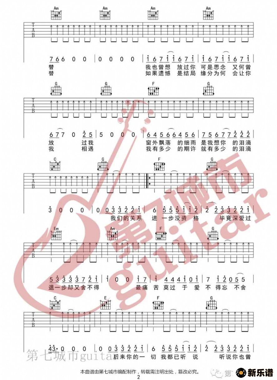 《爱不得忘不舍》吉他谱 白小白-第七城市制谱