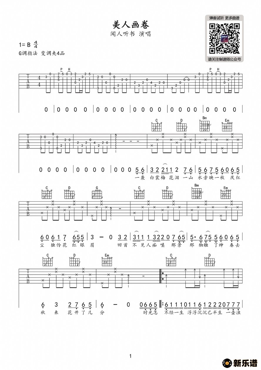 闻人听书演唱的美人画卷歌词,美人画卷吉他谱.