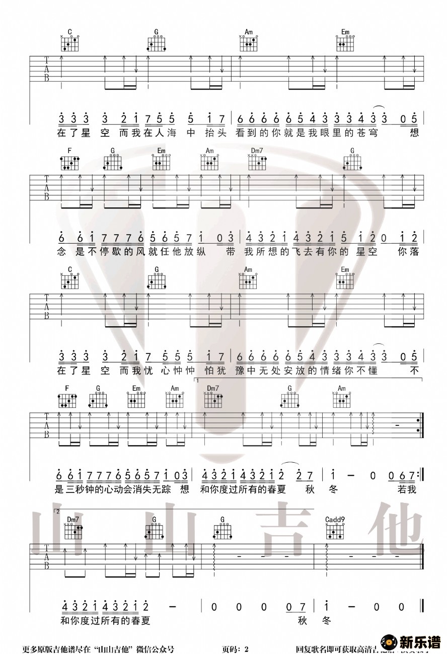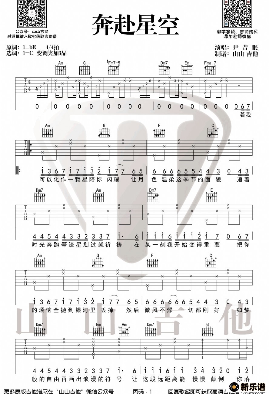 《奔赴星空》吉他谱 尹昔眠-山山吉他制谱