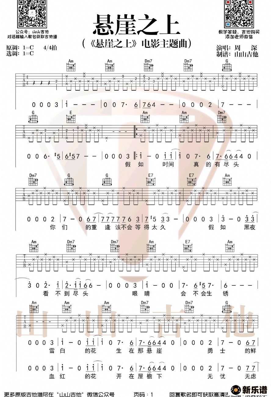 《悬崖之上(《悬崖之上》电影主题曲)》吉他谱 周深-山山吉他制谱