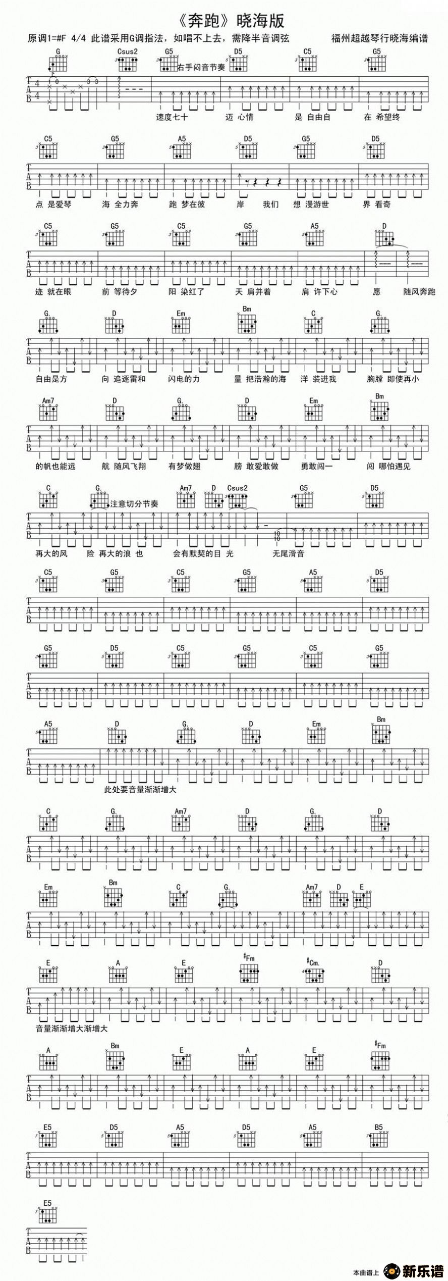 羽泉演唱的奔跑歌词,奔跑吉他谱.