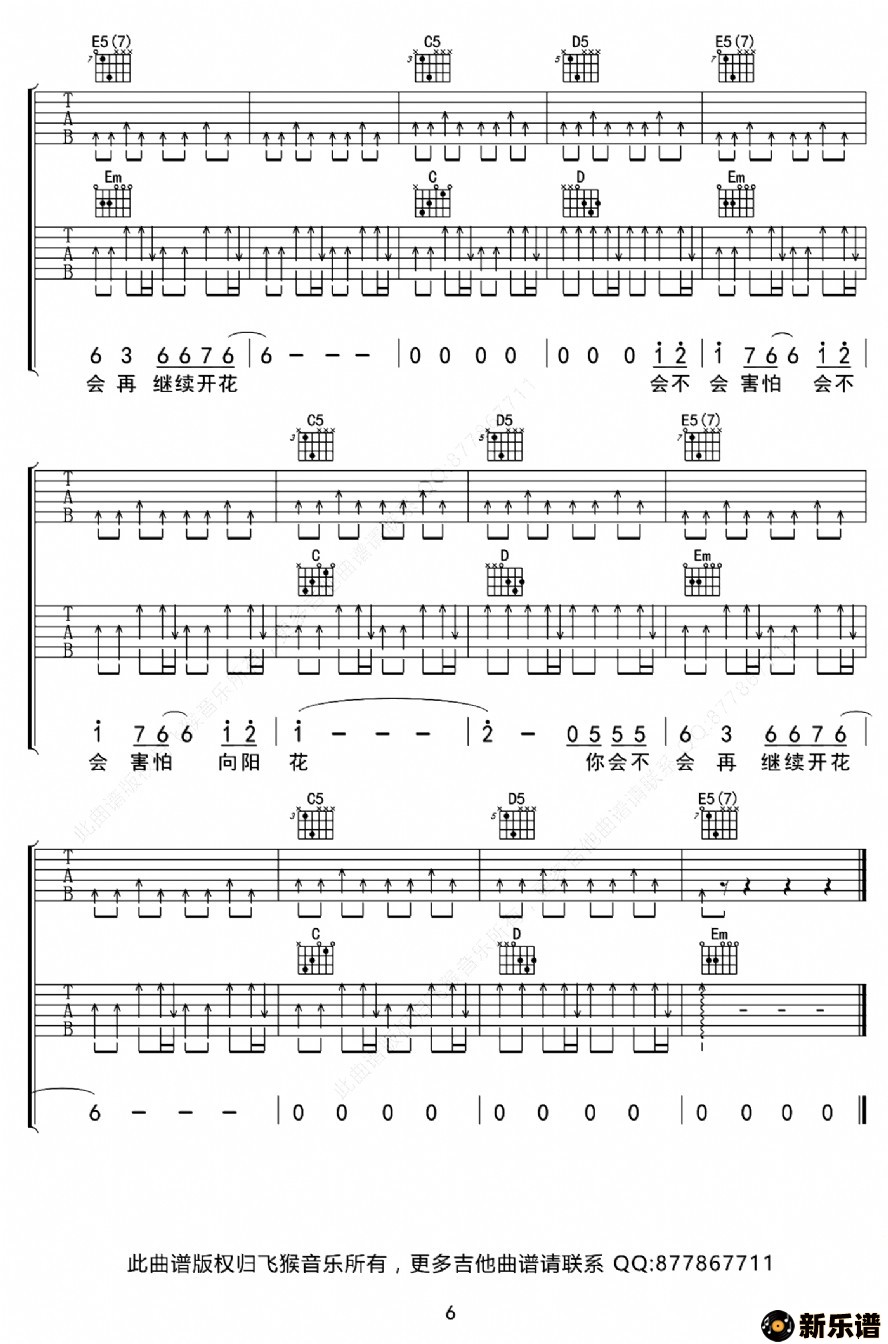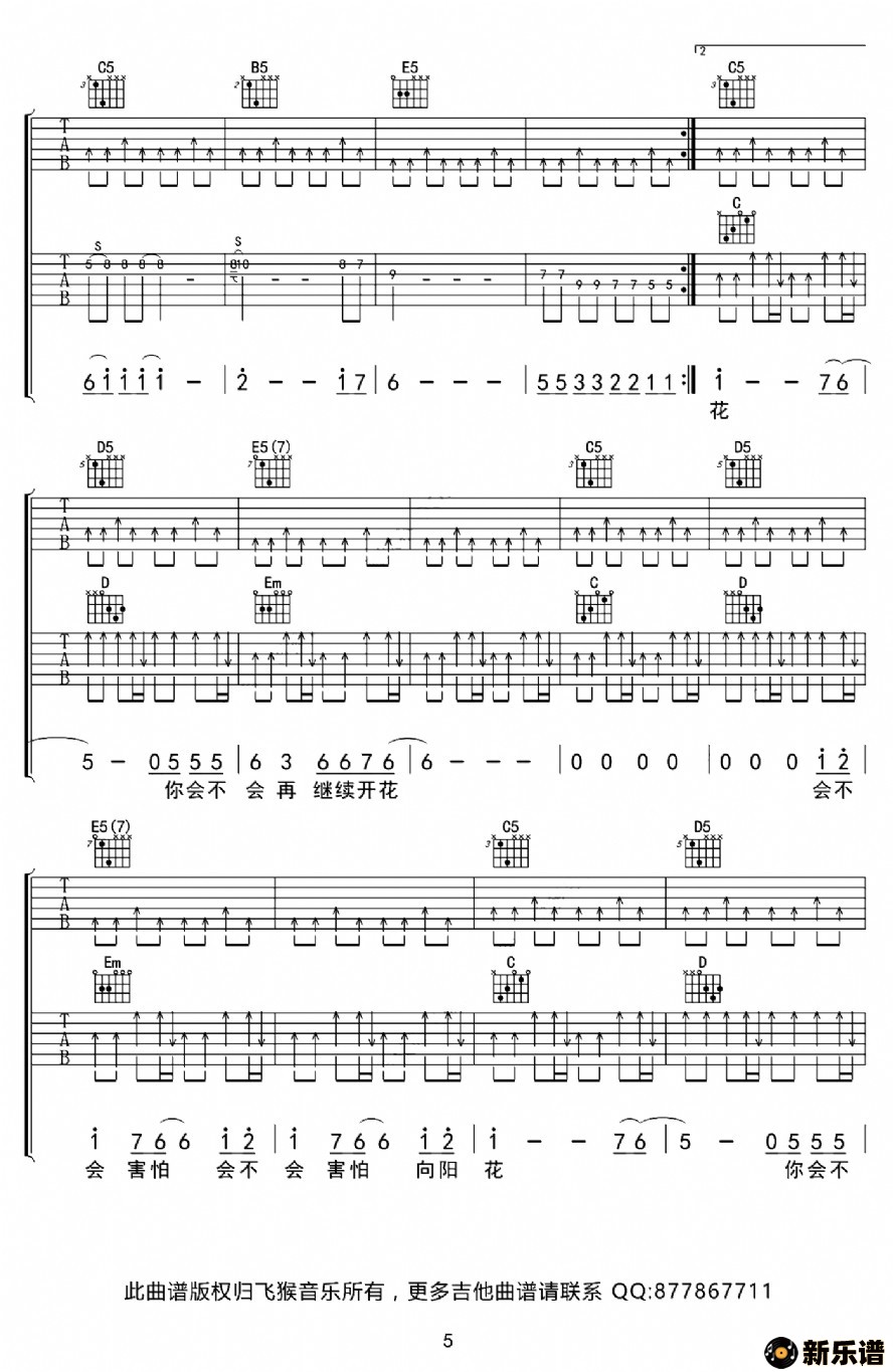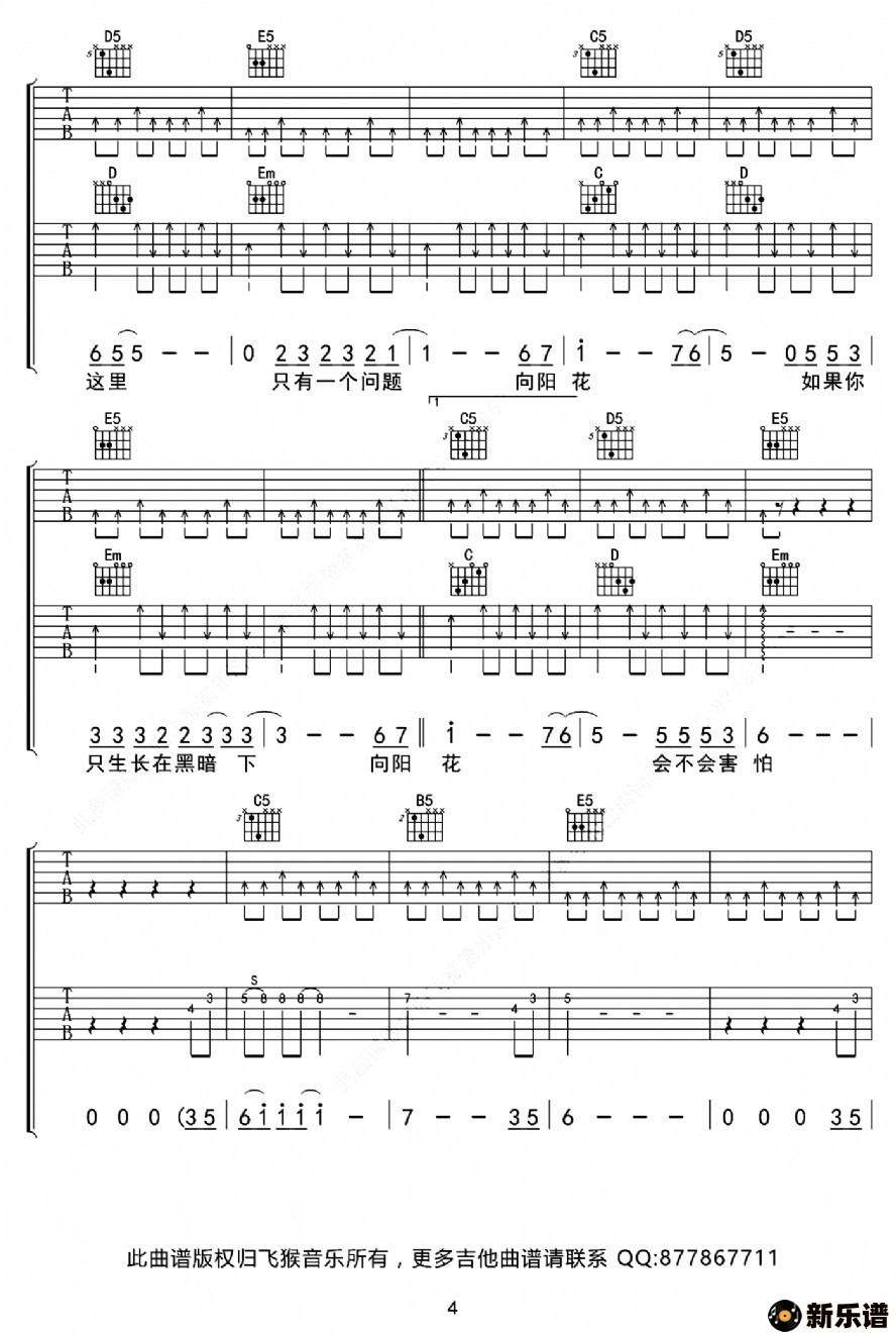> 向阳花吉他谱