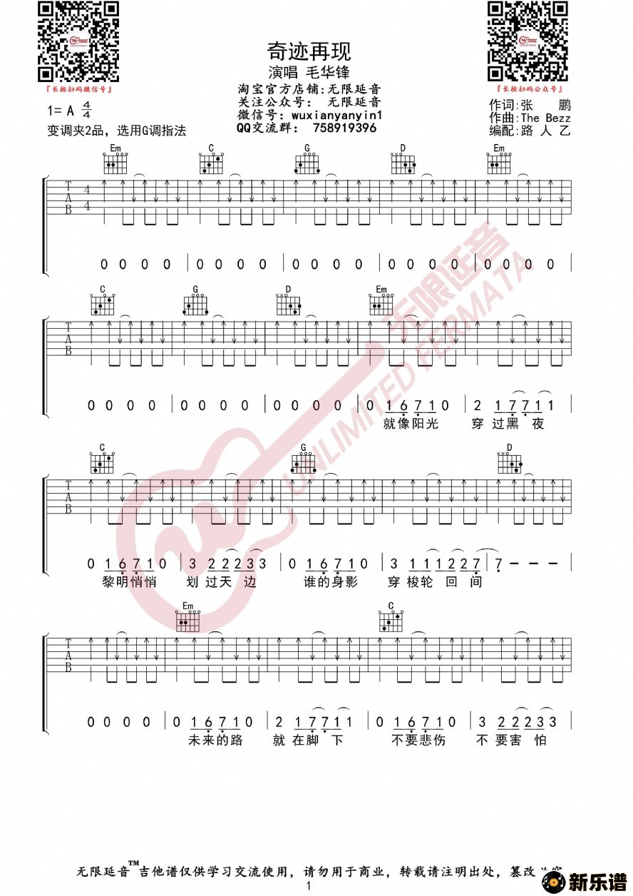 《毛华峰 奇迹再现 吉他谱》吉他谱 毛华峰-无限延音制谱