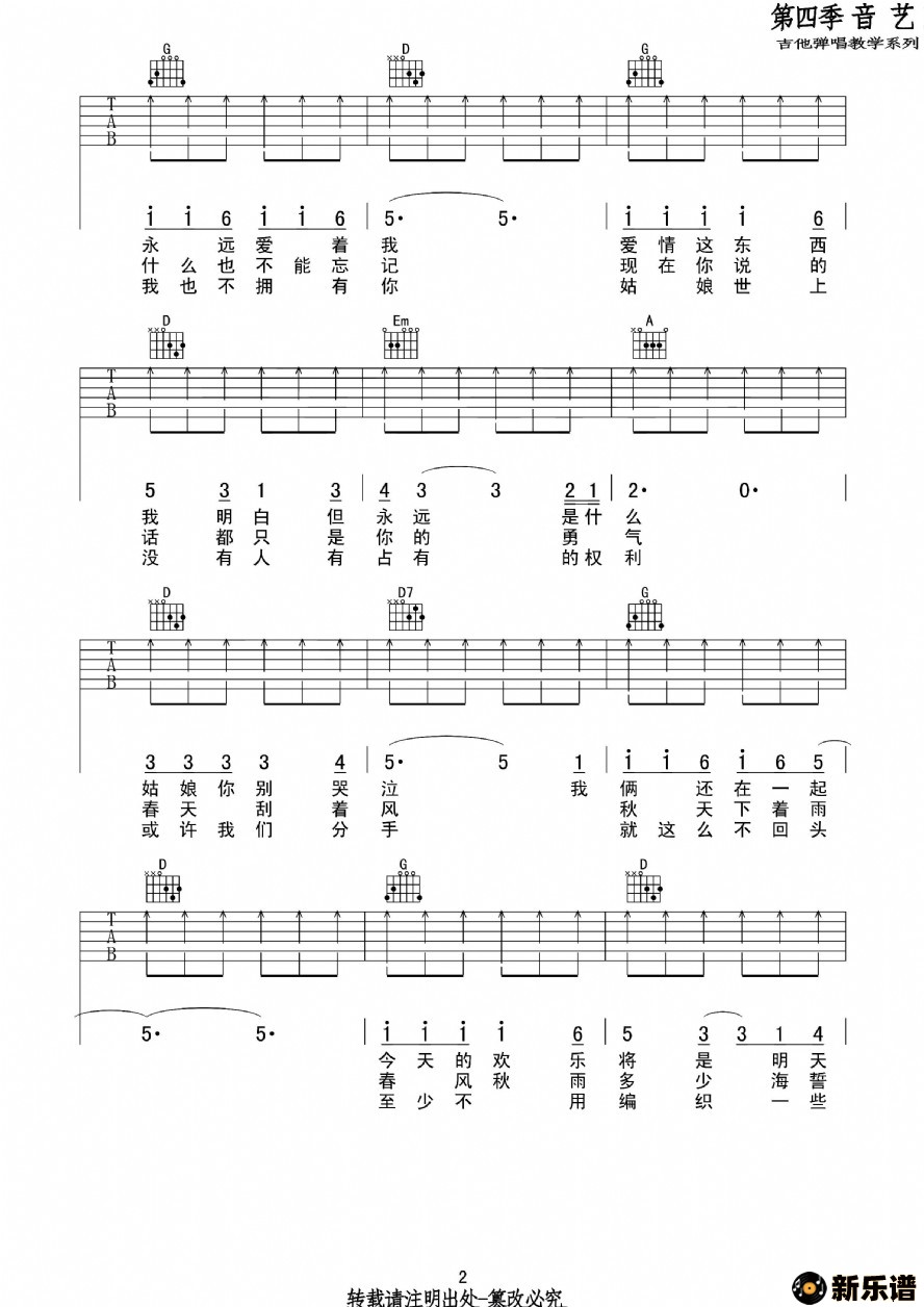 周杰伦 蒲公英的约定 吉他谱-周杰伦