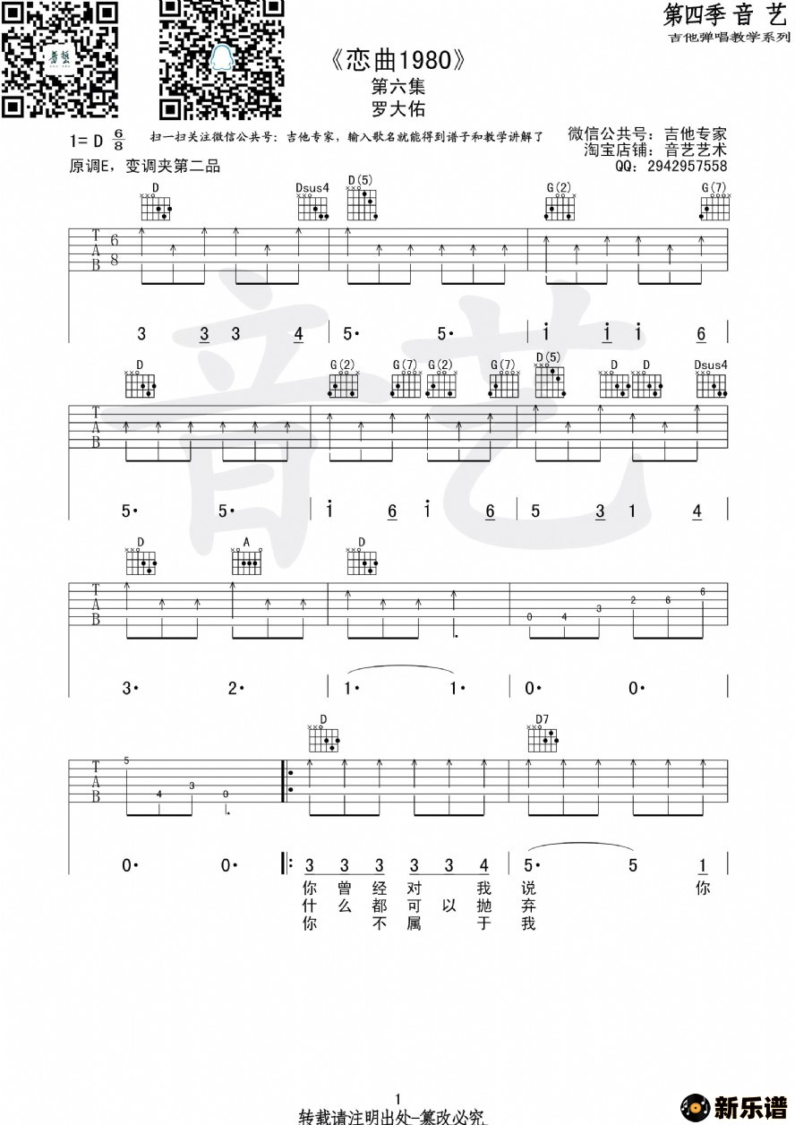 《恋曲1980》吉他谱 罗大佑-吉他专家制谱
