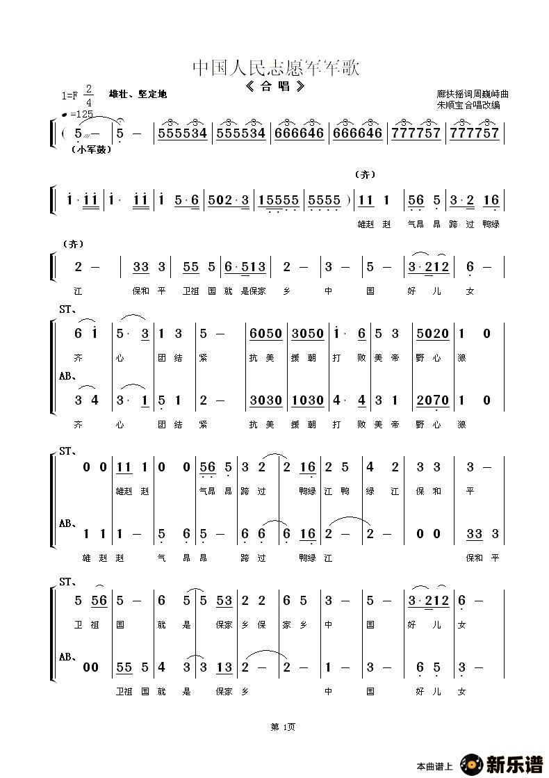 南通市港闸区教师合唱团演唱的中国人民志愿军军歌歌词,中国人民志愿军军歌吉他谱.