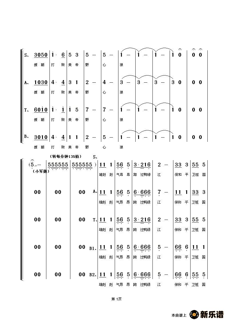 《中国人民志愿军军歌》吉他谱 南通市港闸区教师合唱团