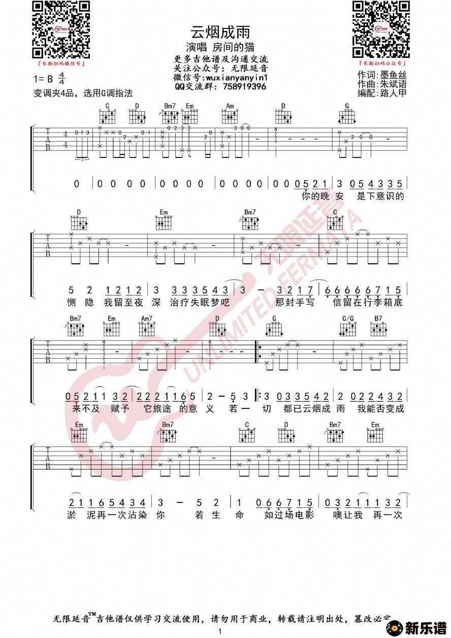 > 房东的猫 云雨成烟 吉他谱吉他谱