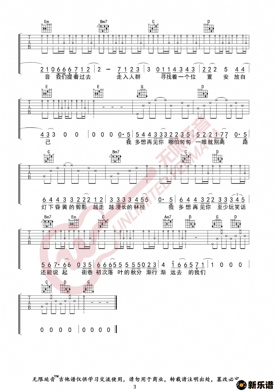 《房东的猫 云雨成烟 吉他谱》吉他谱 房东的猫-无限延音制谱