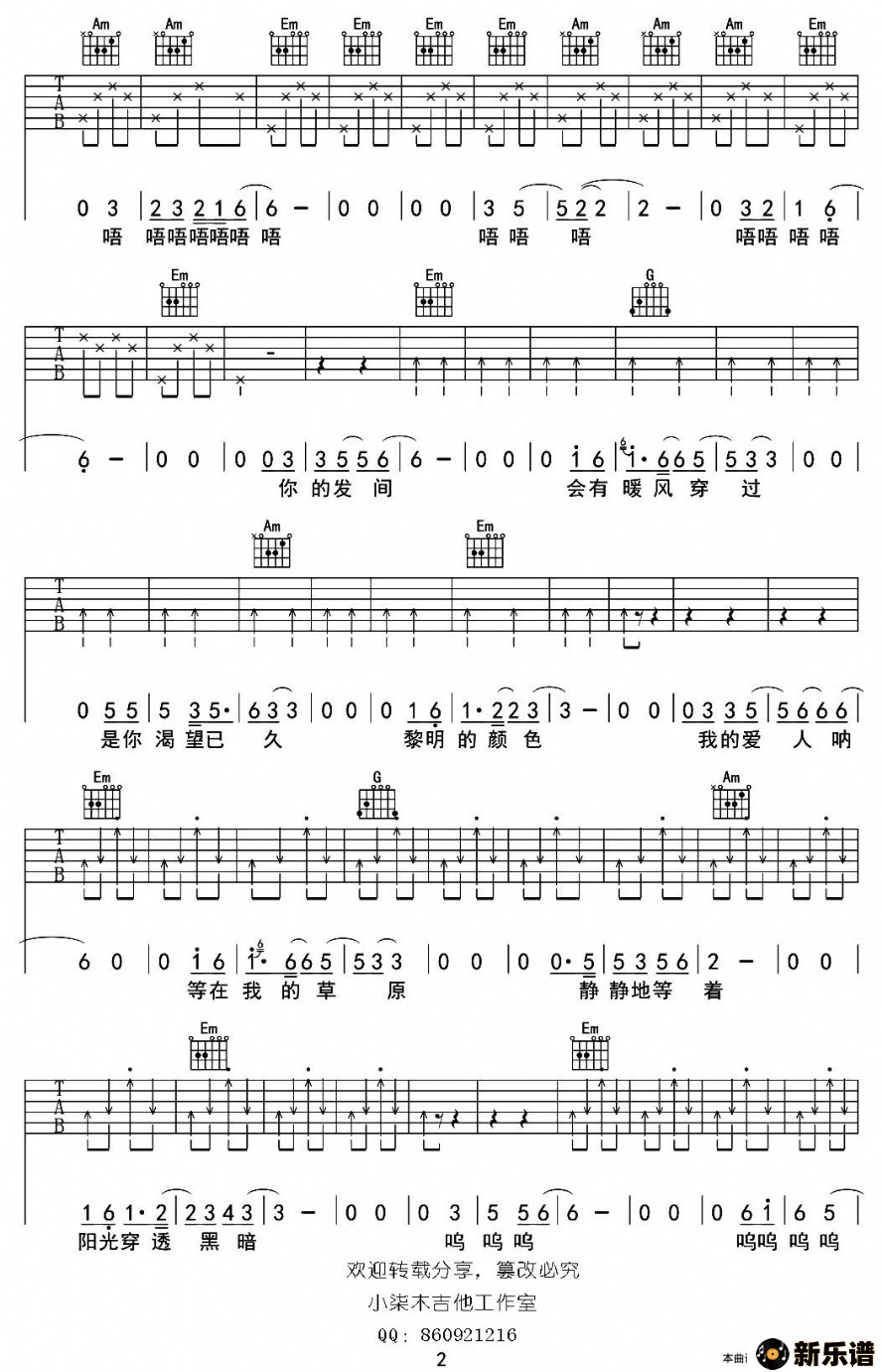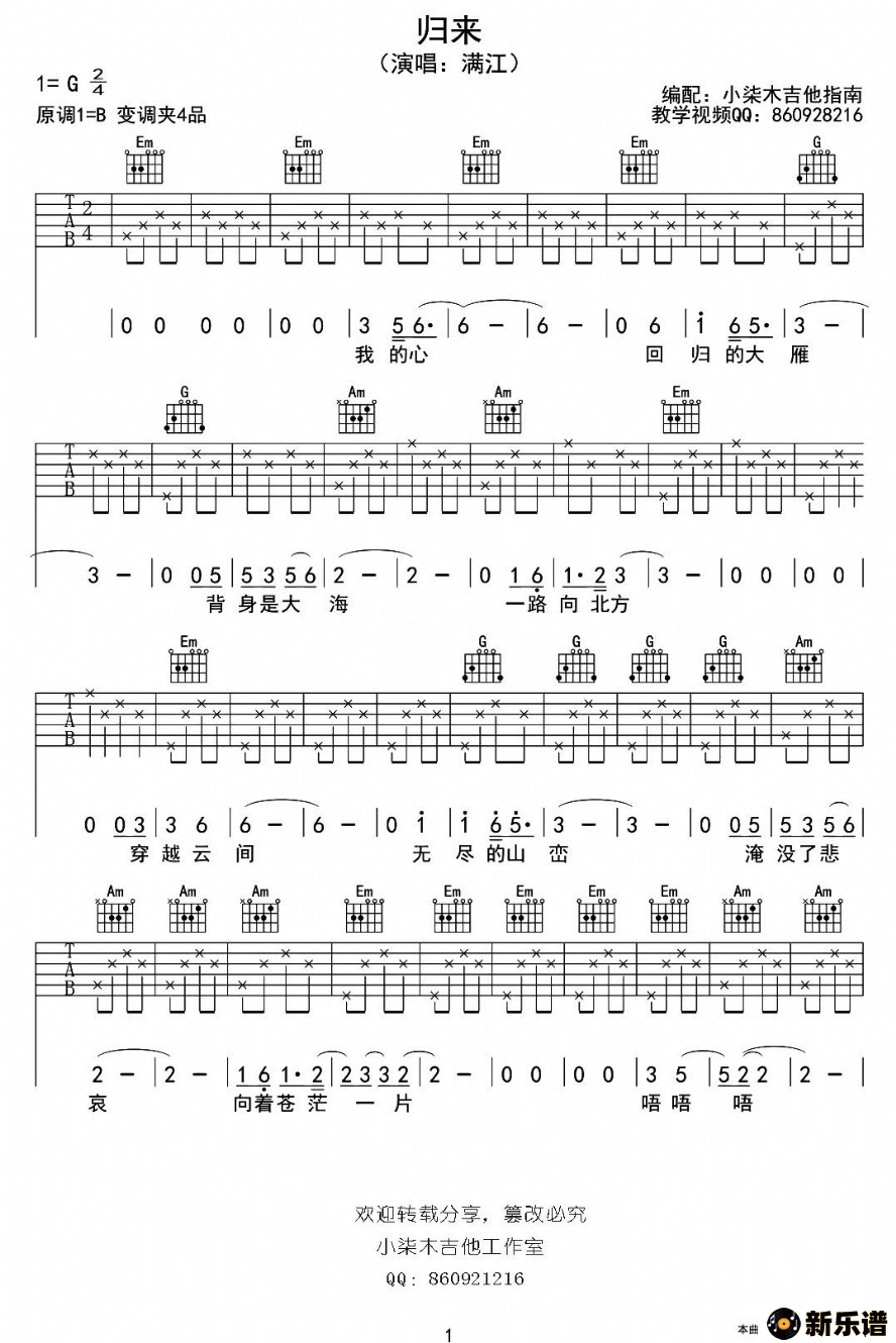 作词:满江 作曲:满江(吉他弹唱谱)