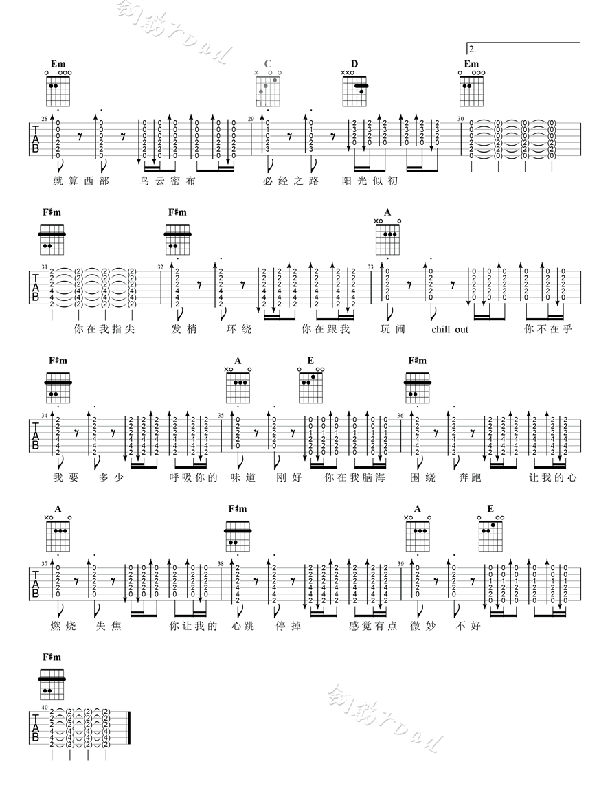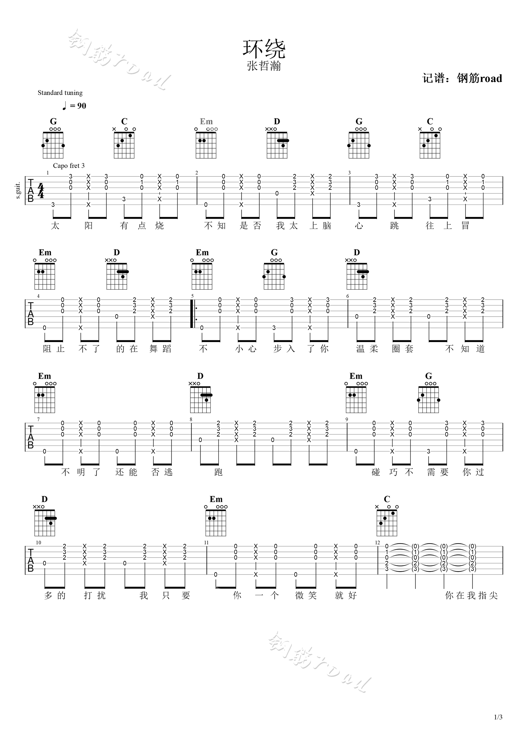 张哲瀚演唱的环绕歌词,环绕吉他谱.