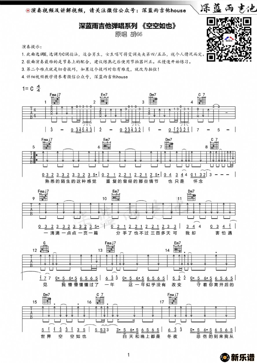 《空空如也》吉他谱 胡66
