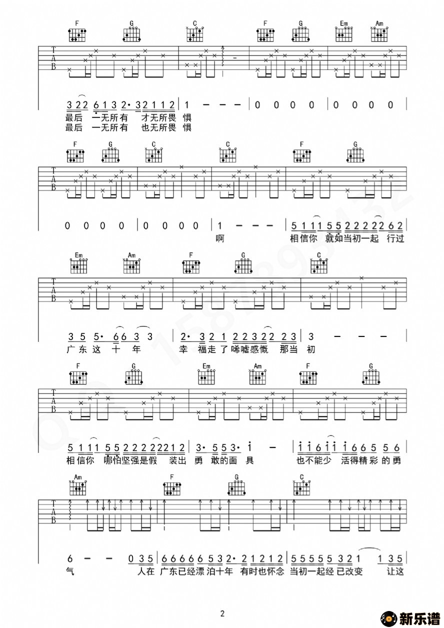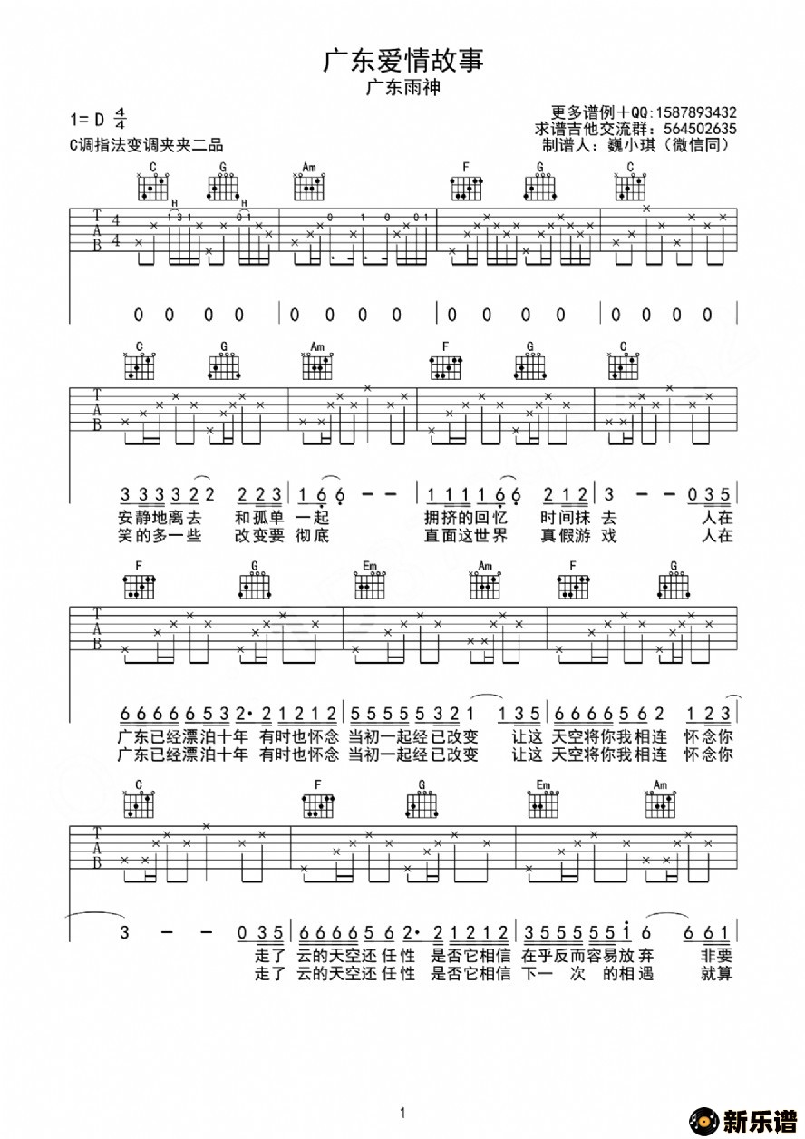 《广东爱情故事》吉他谱c调入门版 广东雨神 猴哥吉他教学 高音教编配吉他谱