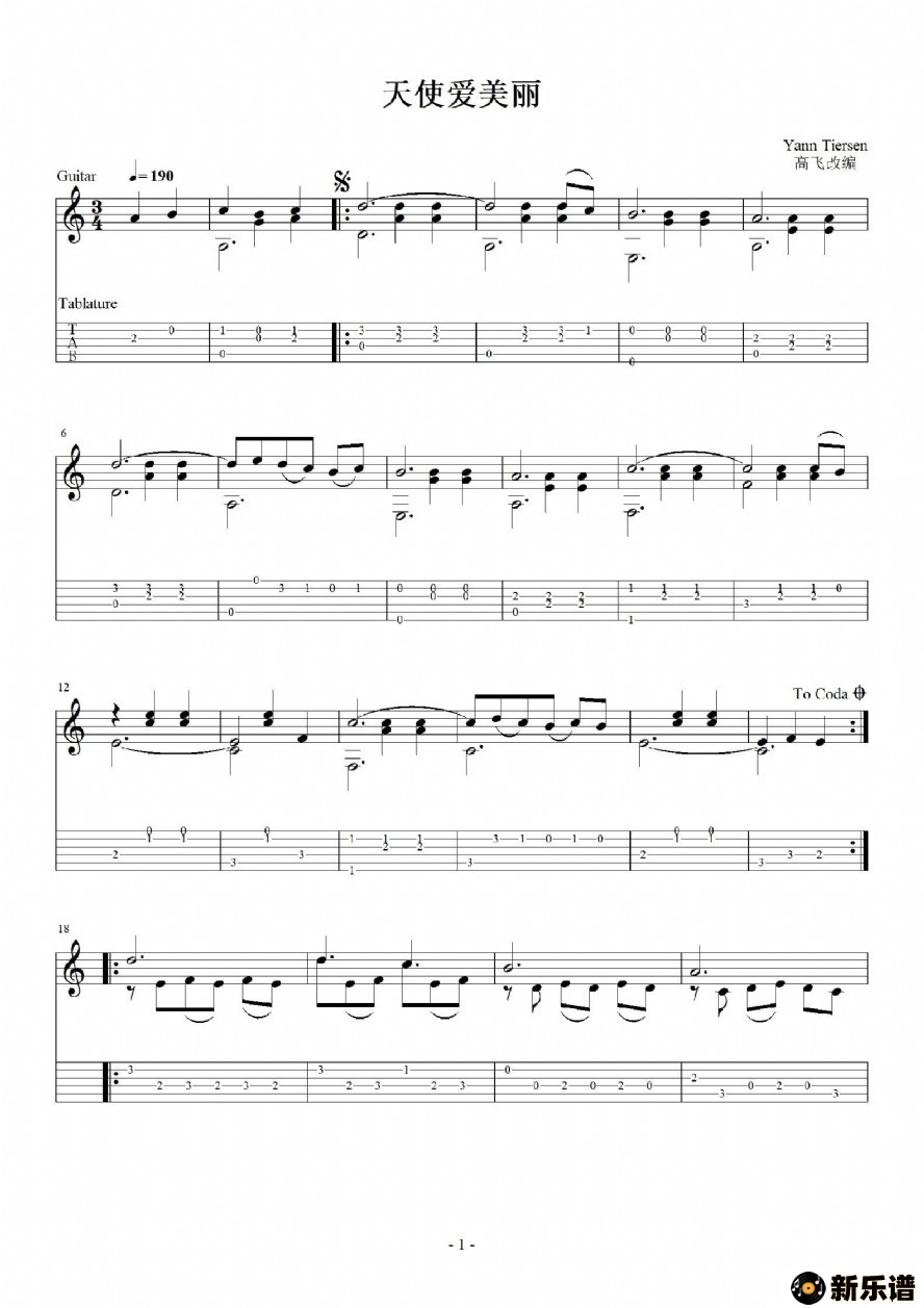 la valse d‘amelie(艾蜜莉圆舞曲)(《天使爱美丽》插曲、吉他独奏、五线谱+六线谱) 演唱的la valse d‘amelie(艾蜜莉圆舞曲)(《天使爱美丽》插曲、吉他独奏、五线谱+六线谱)歌词,la valse d‘amelie(艾蜜莉圆舞曲)(《天使爱美丽》插曲、吉他独奏、五线谱+六线谱)吉他谱.