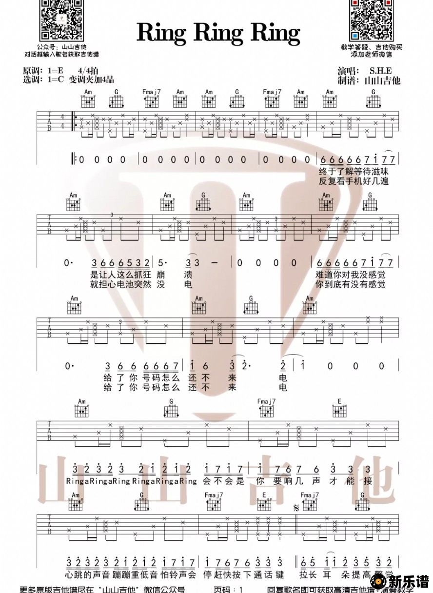 s.h.e演唱的ringringring歌词,ringringring吉他谱.