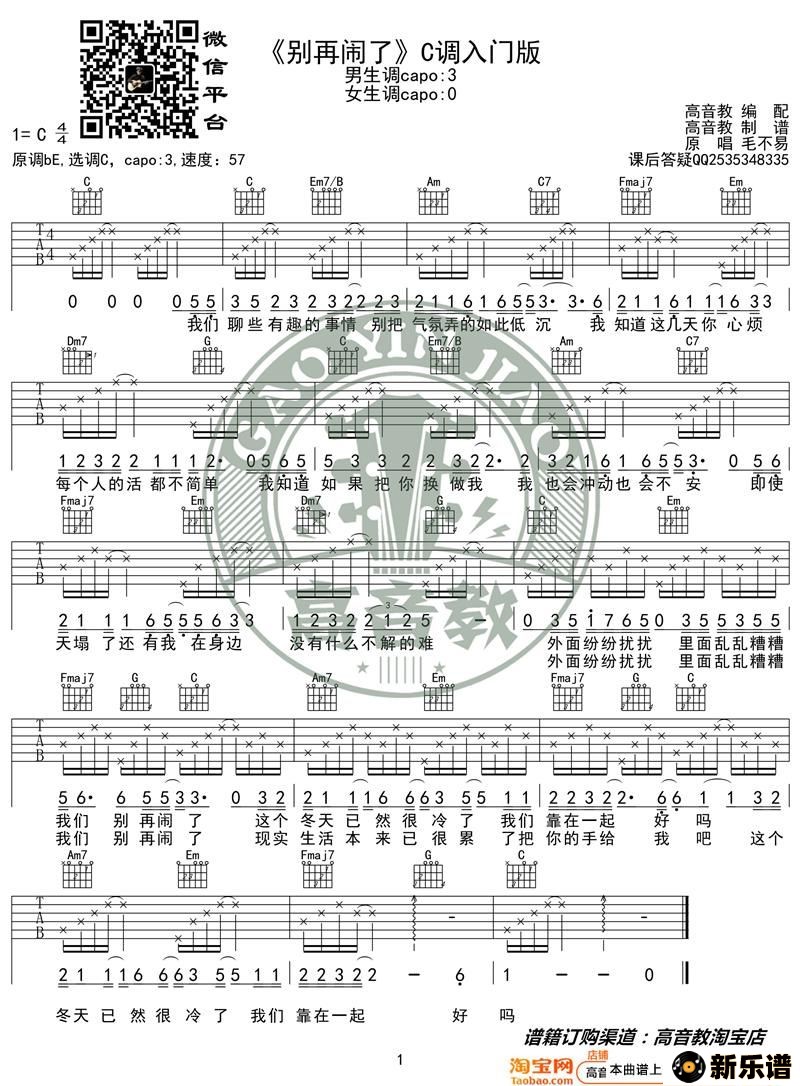 《别再闹了》吉他谱c调入门版 高音教编配 猴哥吉他教学 演唱的《别再闹了》吉他谱c调入门版 高音教编配 猴哥吉他教学歌词,《别再闹了》吉他谱c调入门版 高音教编配 猴哥吉他教学吉他谱. 此吉他谱由新乐谱会员 高音教 上传