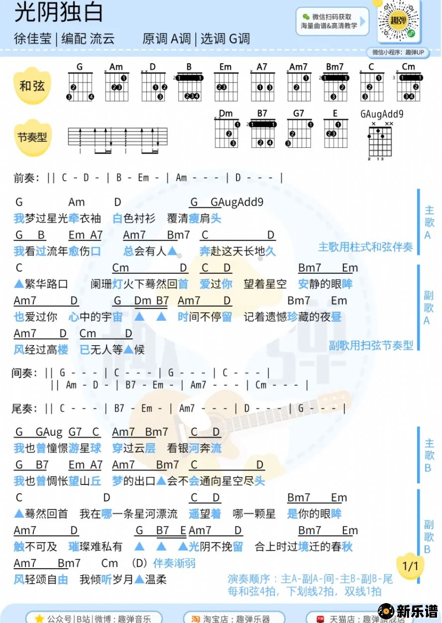 徐佳莹演唱的光阴独白歌词,光阴独白吉他谱.