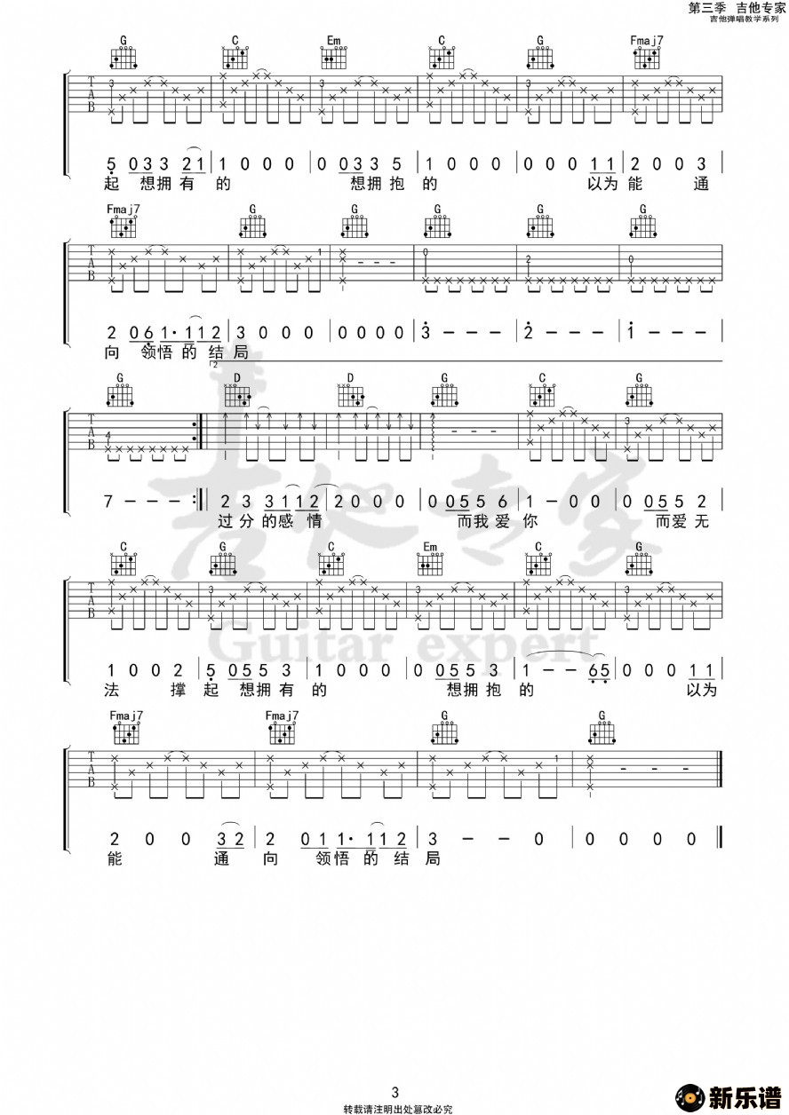 此吉他谱由新乐谱会员