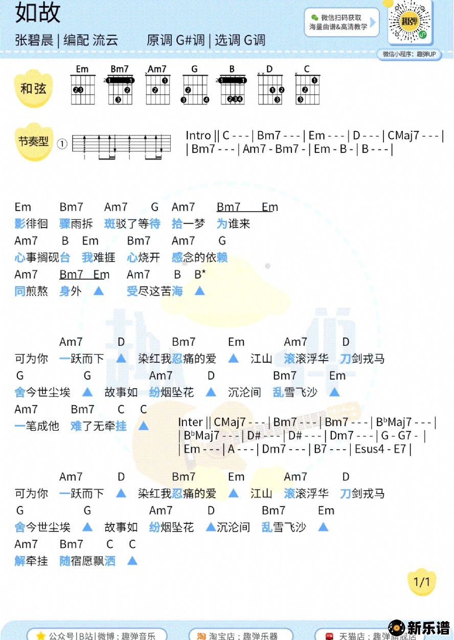 张碧晨演唱的如故(《周生如故》主题曲)歌词,如故(《周生如故》主题曲)吉他谱.