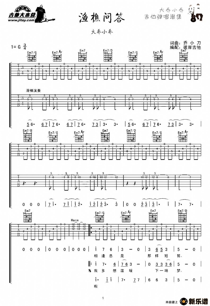 《渔樵问答》吉他谱 大乔小乔