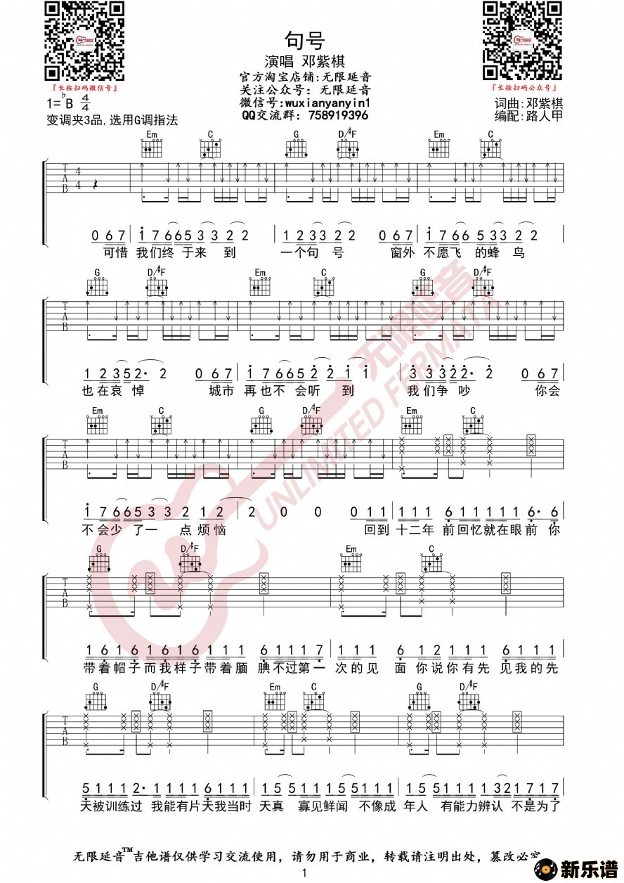《邓紫棋 句号 吉他谱》吉他谱 邓紫棋-无限延音制谱