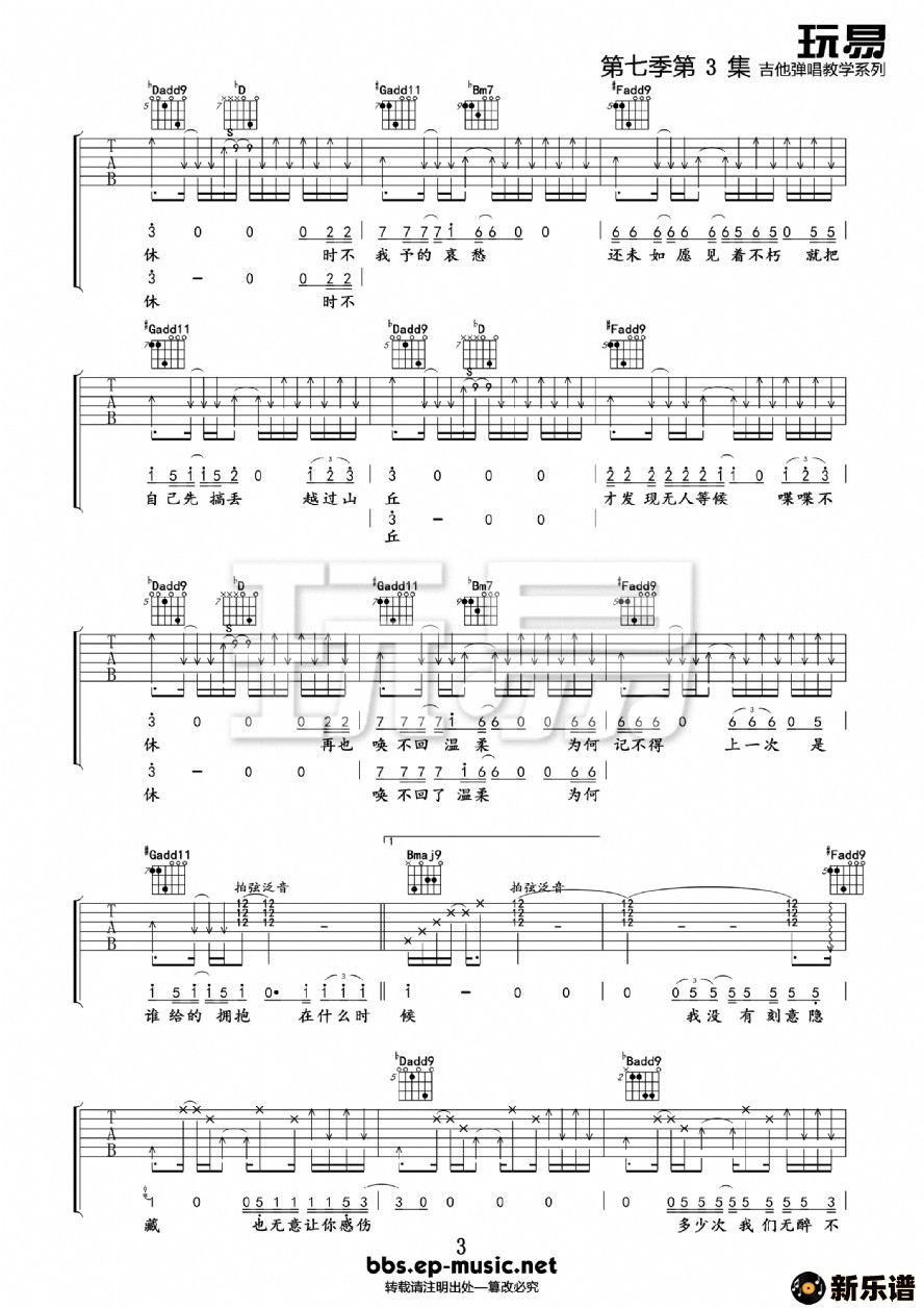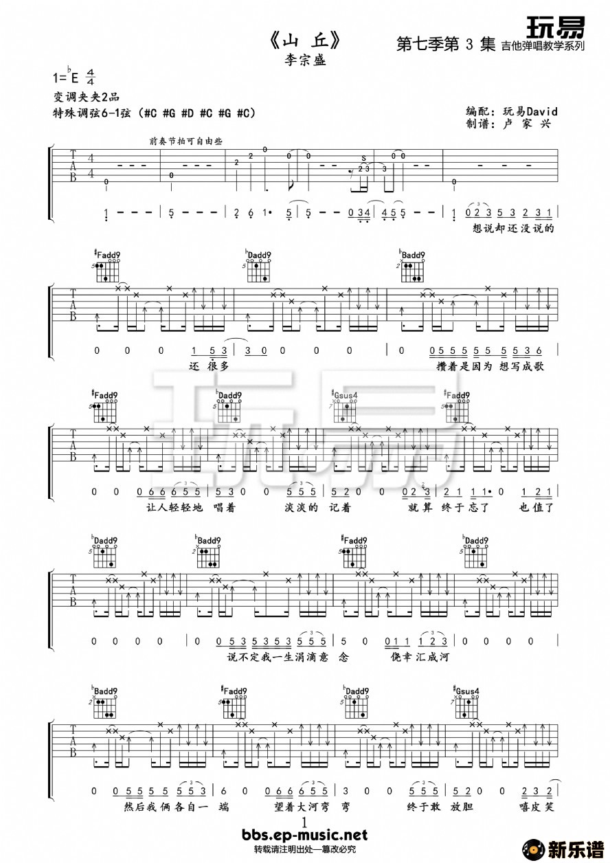 李宗盛演唱的山丘歌词,山丘吉他谱.