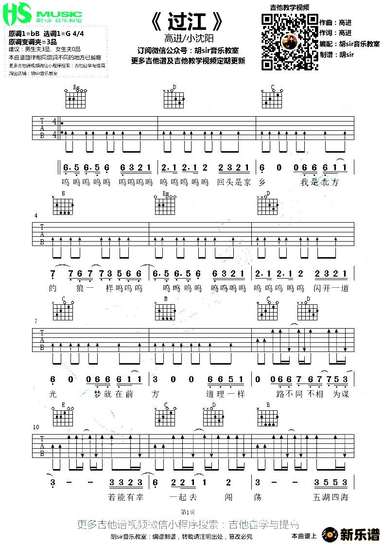 高进 小沈阳演唱的过江歌词,过江吉他谱.