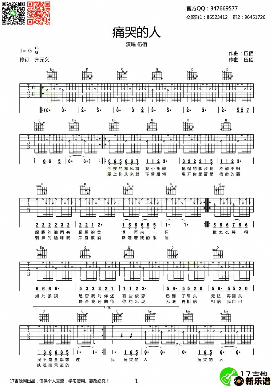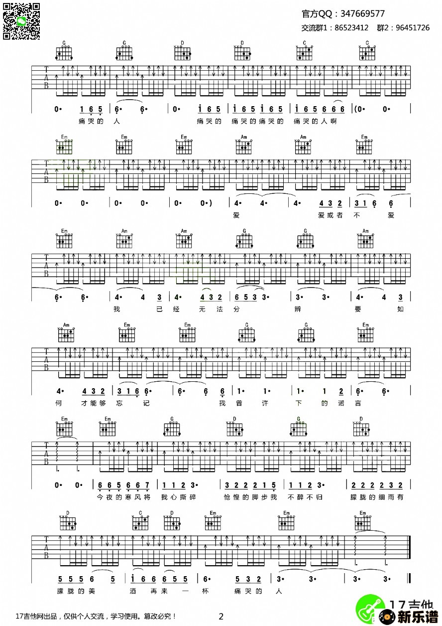 《痛哭的人》吉他谱