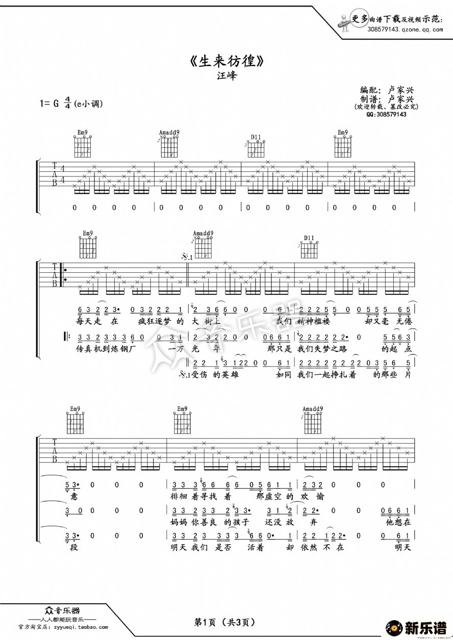 演唱的生来彷徨吉他谱六线谱歌词,生来彷徨吉他谱六线谱吉他谱.