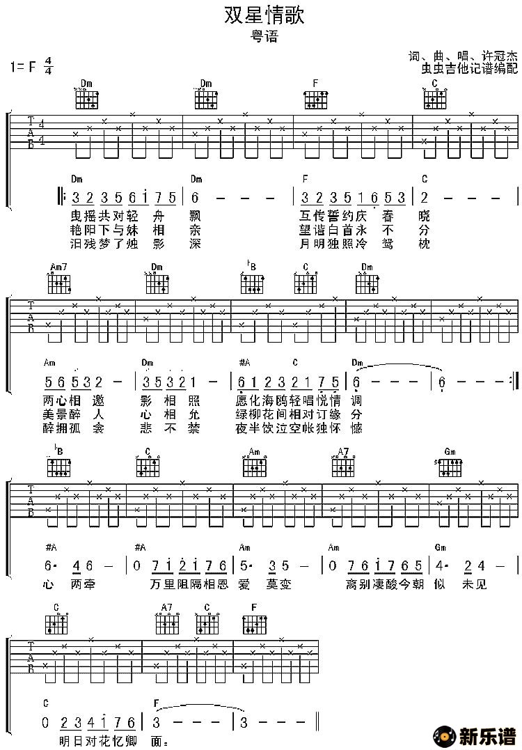许冠杰演唱的双星情歌歌词,双星情歌吉他谱.