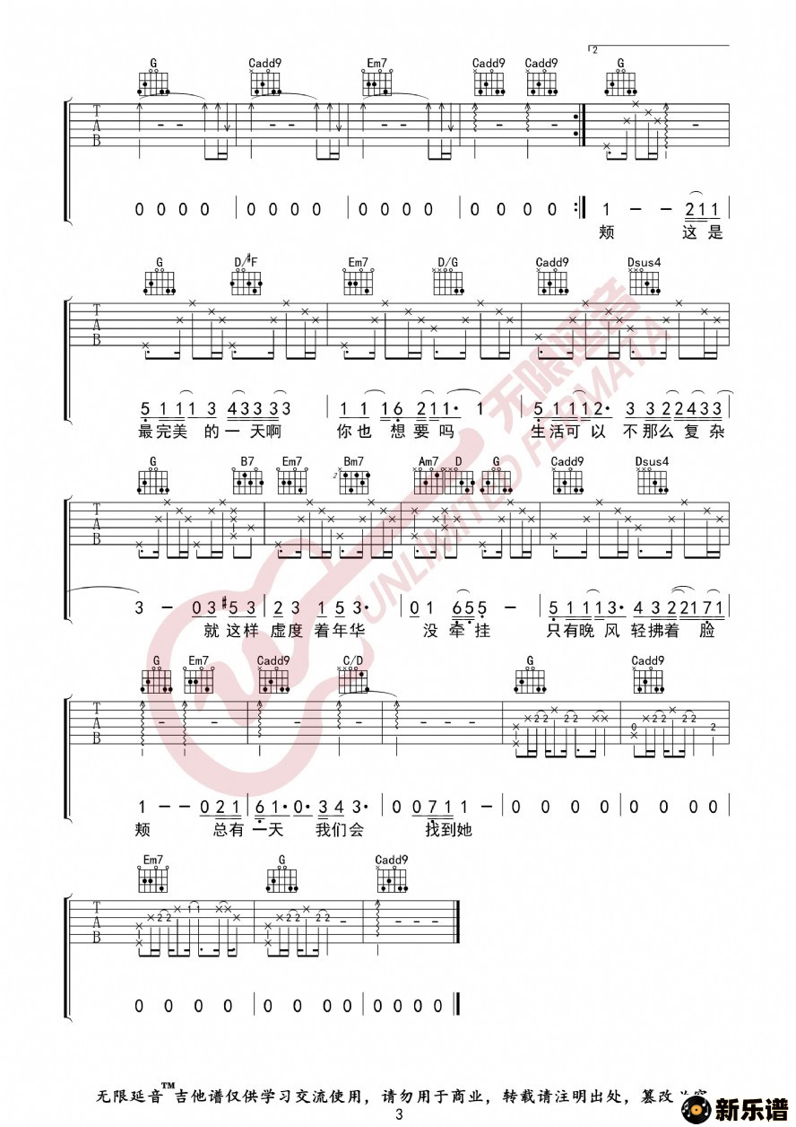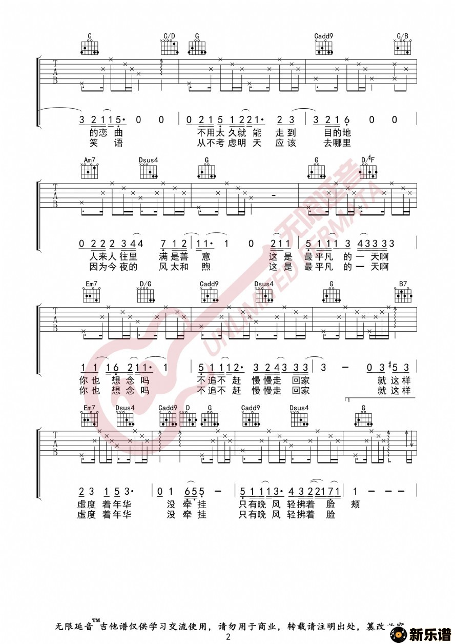 《毛不易 平凡的一天 吉他谱》吉他谱 毛不易-无限延音制谱