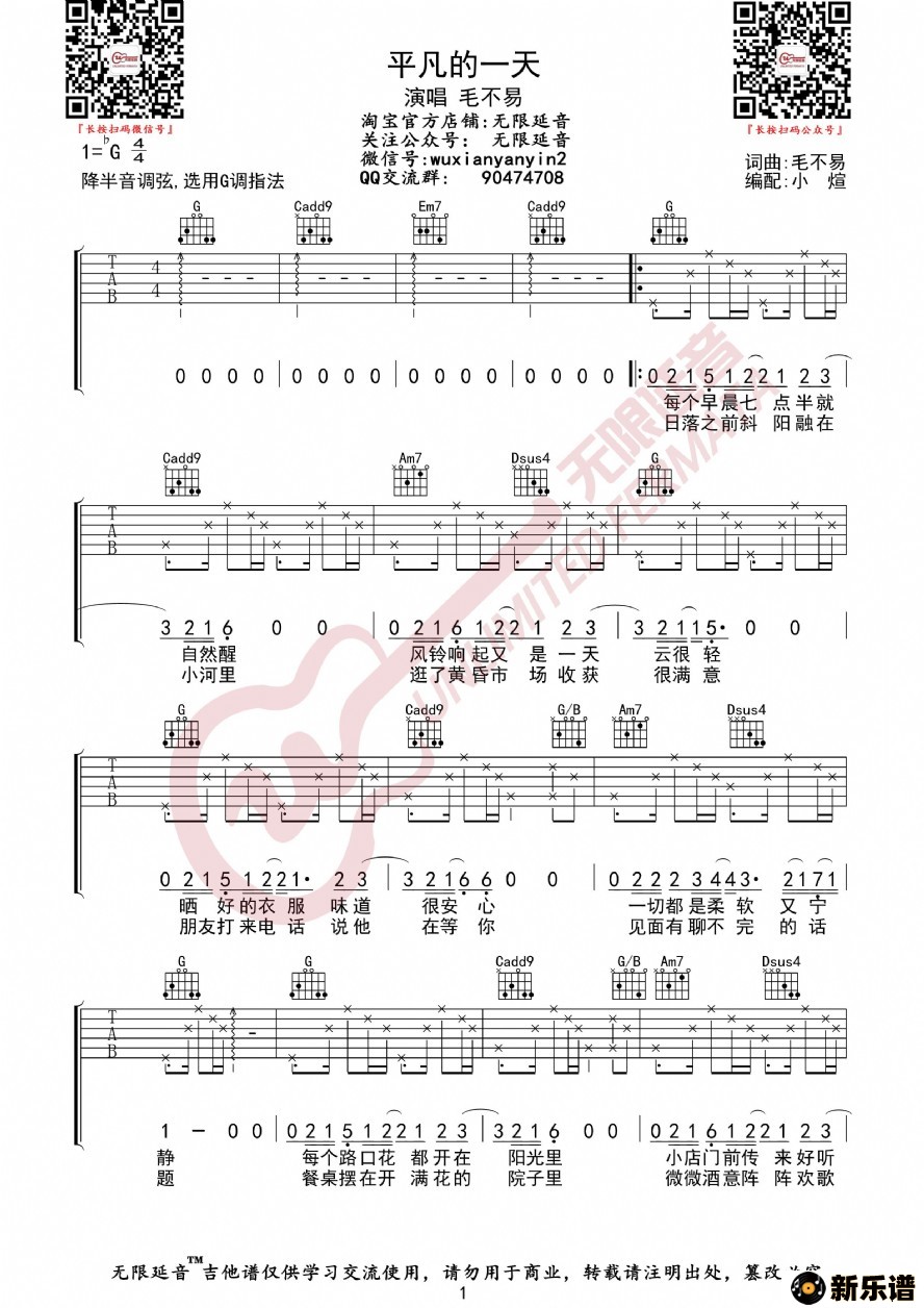 毛不易演唱的毛不易 平凡的一天 吉他谱歌词,毛不易 平凡的一天 吉他谱吉他谱.