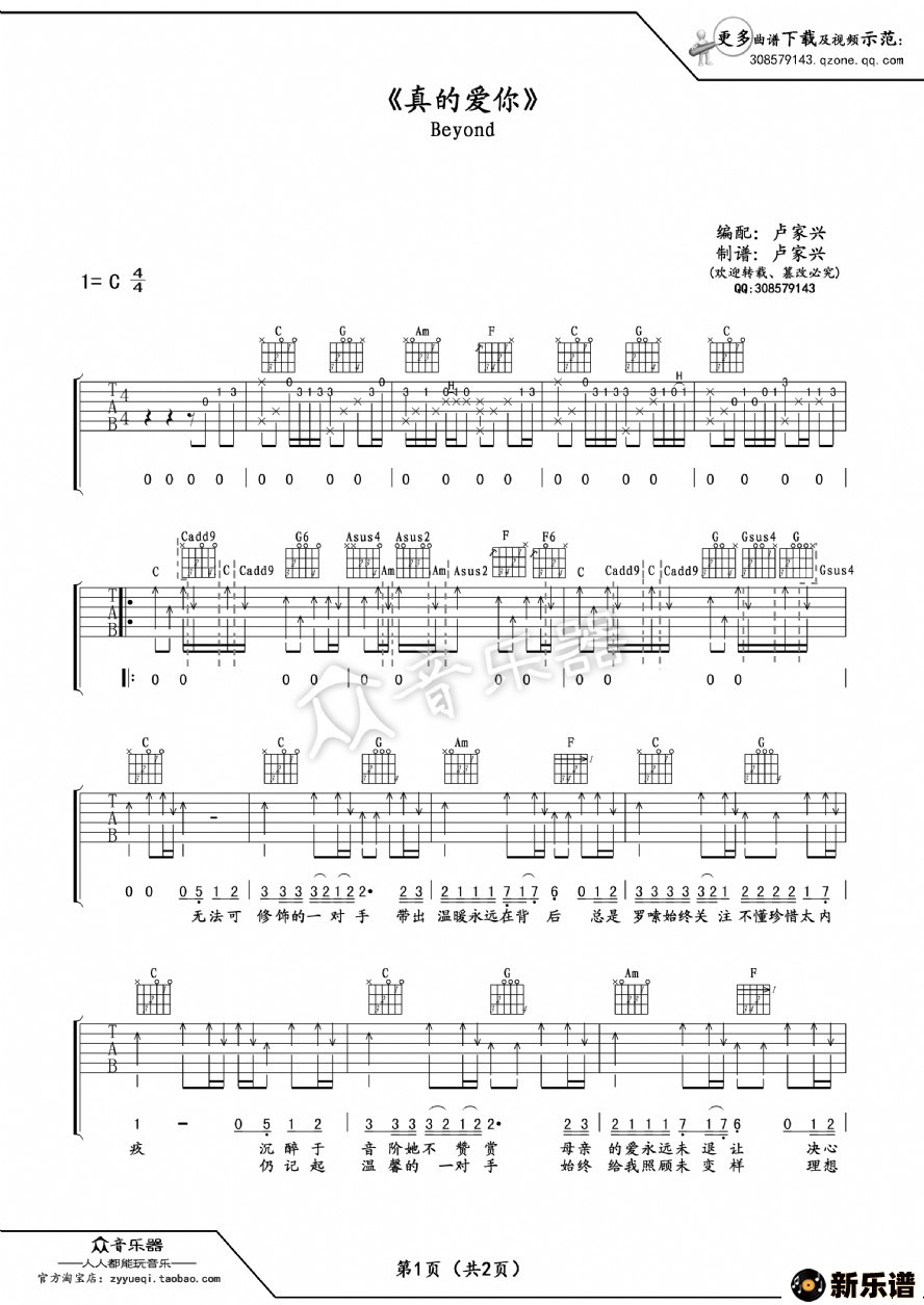 Beyond演唱的真的爱你吉他谱六线谱歌词,真的爱你吉他谱六线谱吉他谱.