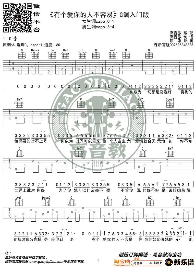 《有个爱你的人不容易》吉他谱吉他弹唱教学g调入门版 高音教 演唱的《有个爱你的人不容易》吉他谱吉他弹唱教学g调入门版 高音教歌词,《有个爱你的人不容易》吉他谱吉他弹唱教学g调入门版 高音教吉他谱. 此吉他谱由新乐谱会员 高音教 上传