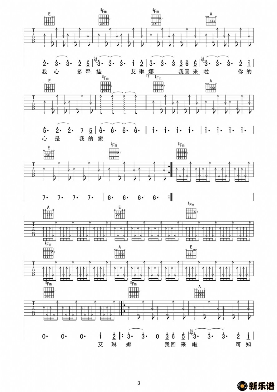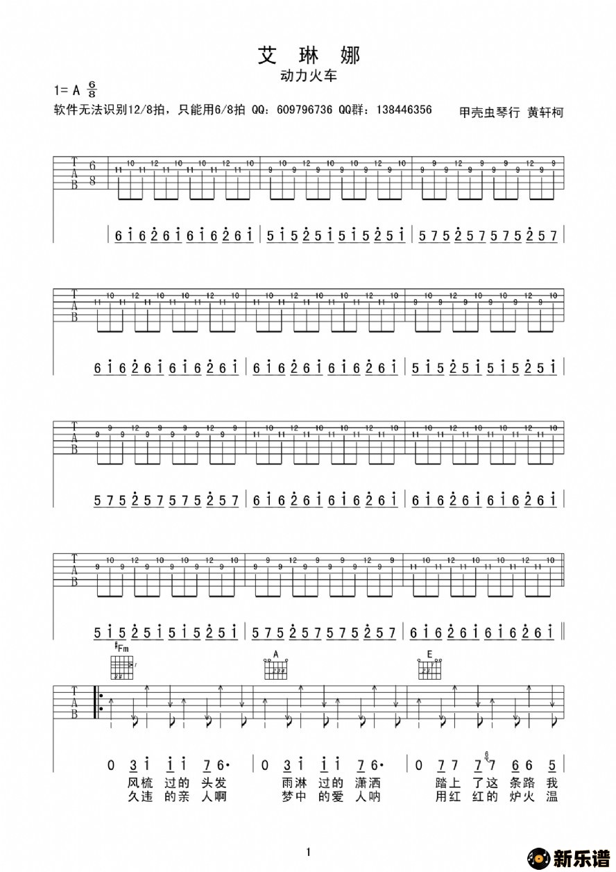 动力火车演唱的艾琳娜歌词,艾琳娜吉他谱.