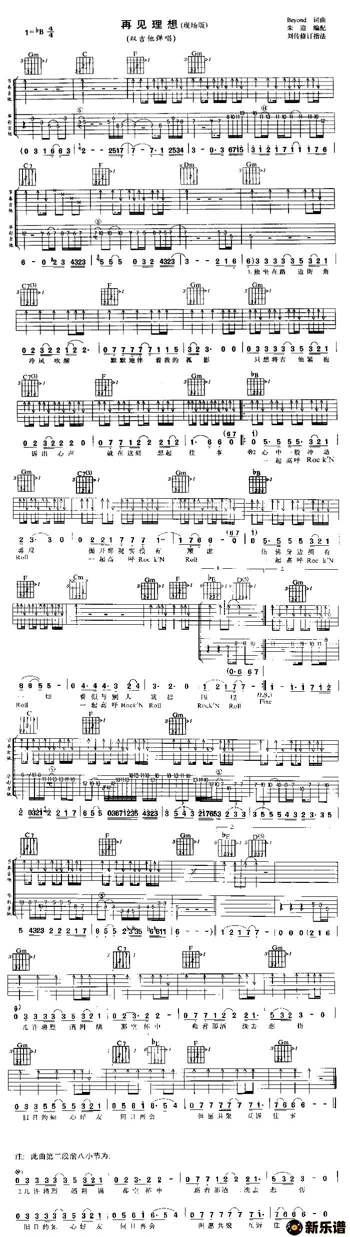 Beyond演唱的再见理想歌词,再见理想吉他谱.