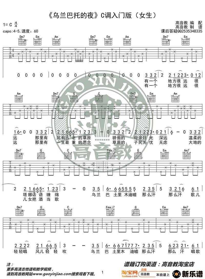 《乌兰巴托的夜》吉他谱吉他弹唱教学c调入门版 高音教 演唱的《乌兰巴托的夜》吉他谱吉他弹唱教学c调入门版 高音教歌词,《乌兰巴托的夜》吉他谱吉他弹唱教学c调入门版 高音教吉他谱. 此吉他谱由新乐谱会员 高音教 上传