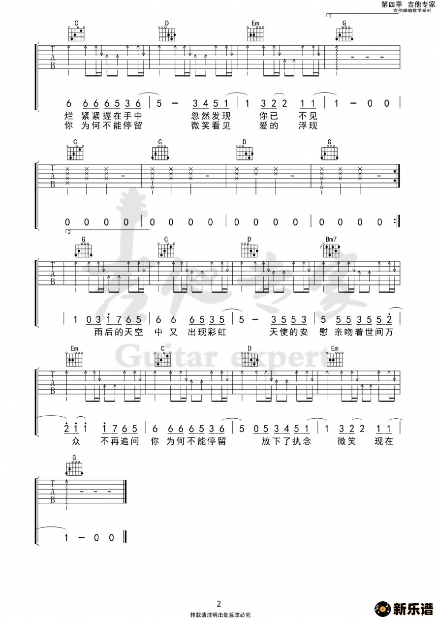 此吉他谱由新乐谱会员