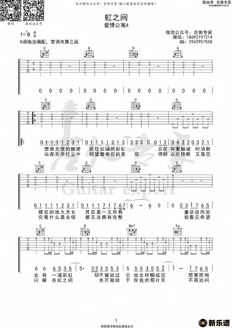 《虹之间》吉他谱 -吉他专家制谱